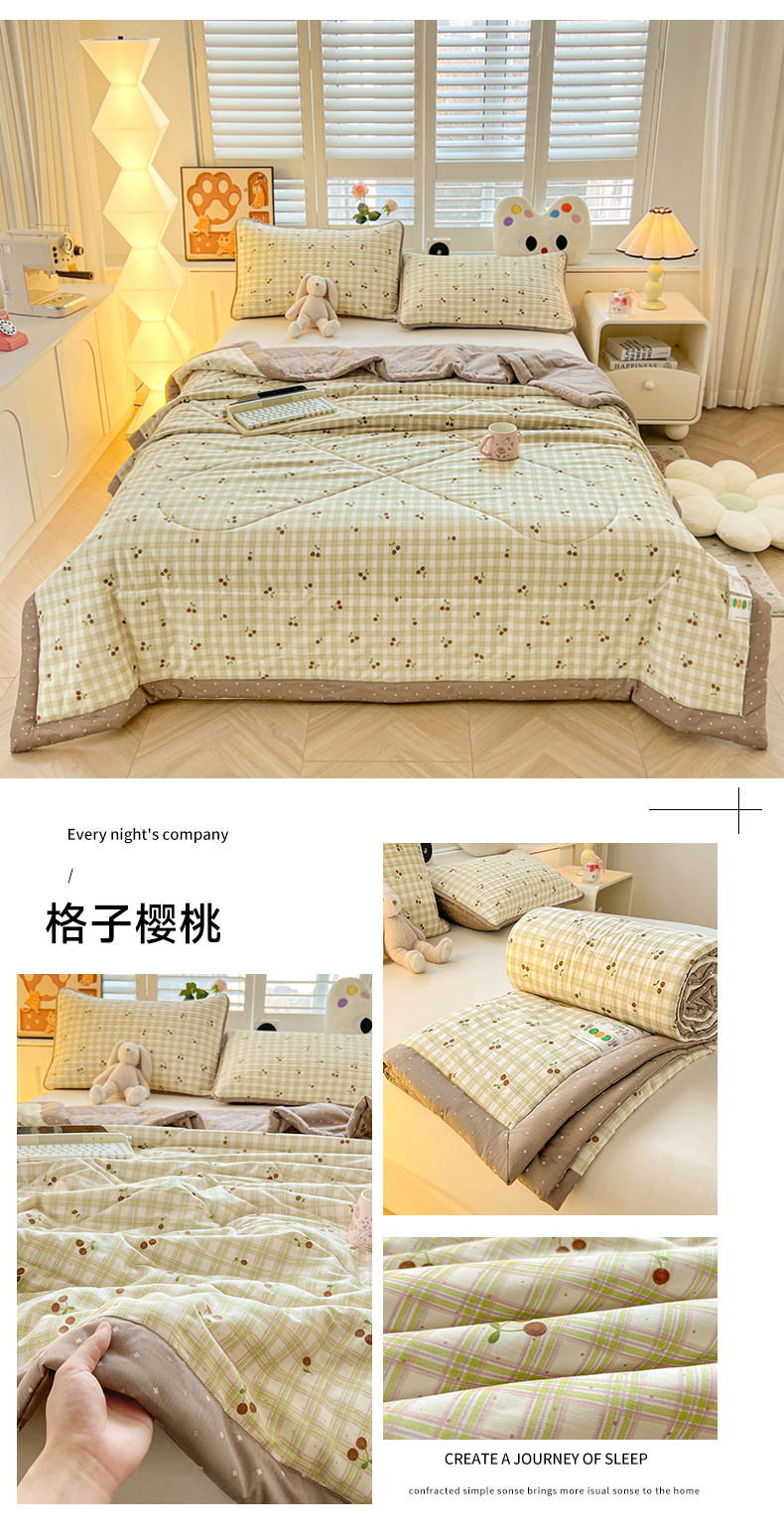 雅萱家纺 2025新款全棉夏被套件 格子樱桃