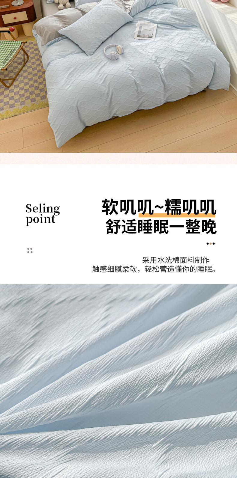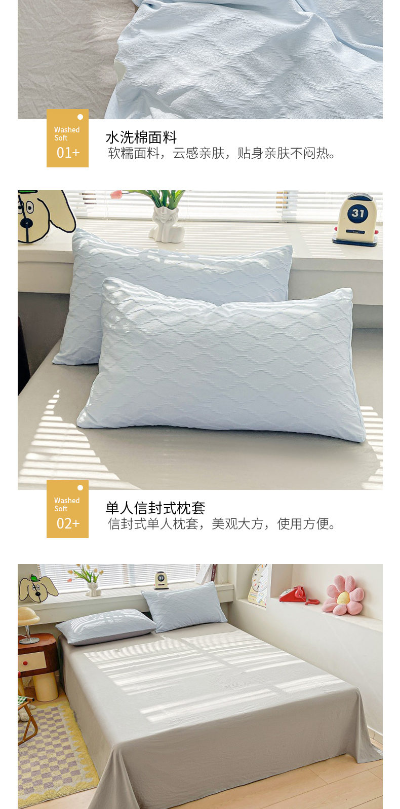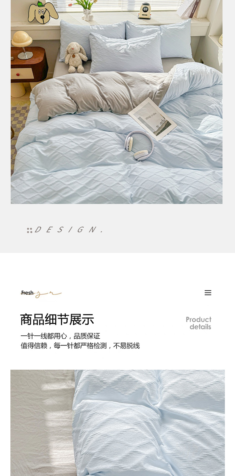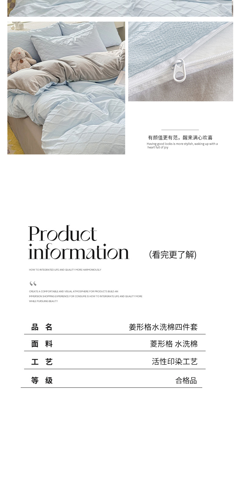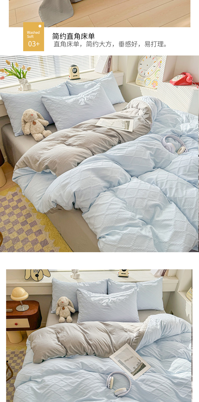 当前位置: 91家纺网 > 商品网购 > 床品套件 > 四件套 > 水洗棉四件套 > 麒东家纺 2025年新款水洗棉春夏菱形格双拼小清新高品质四件套 菱形格-蓝灰
