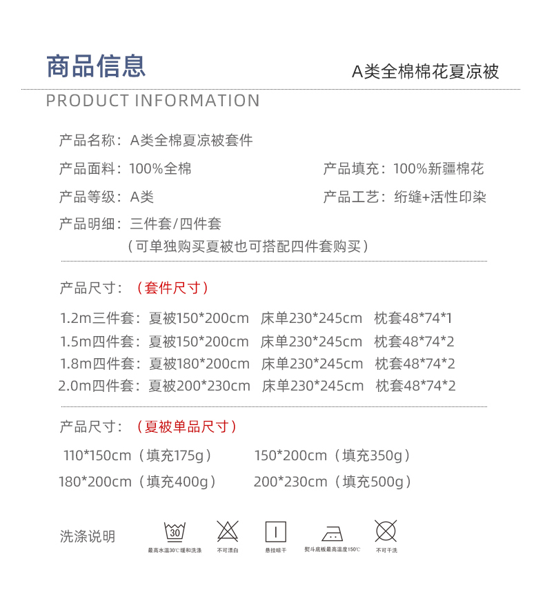 • 适用季节: 空调被/夏凉被