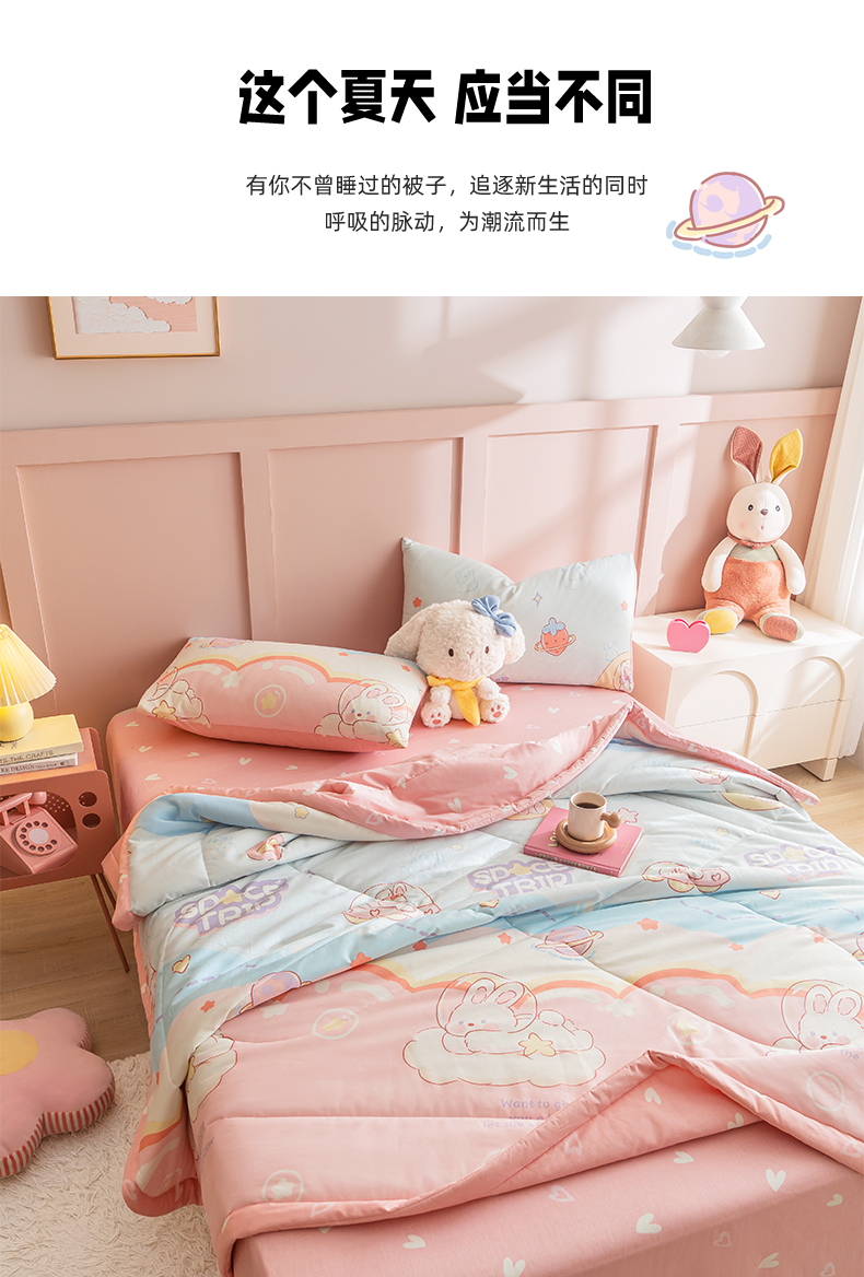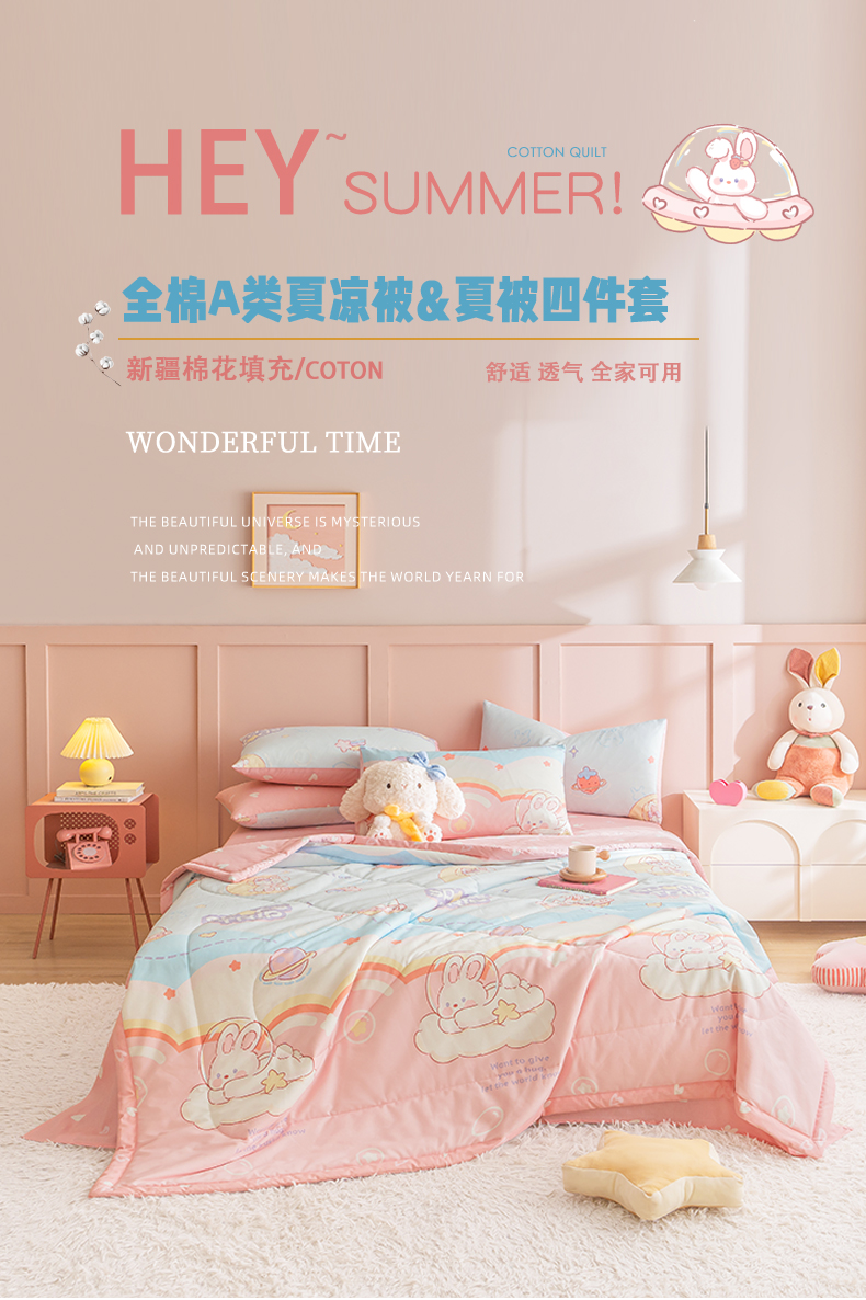 • 91家纺网 家纺一手货源 找家纺 暖阳 【同款地板价】2025年新款全棉印花棉花夏被四件套被子被芯 月岛捕梦