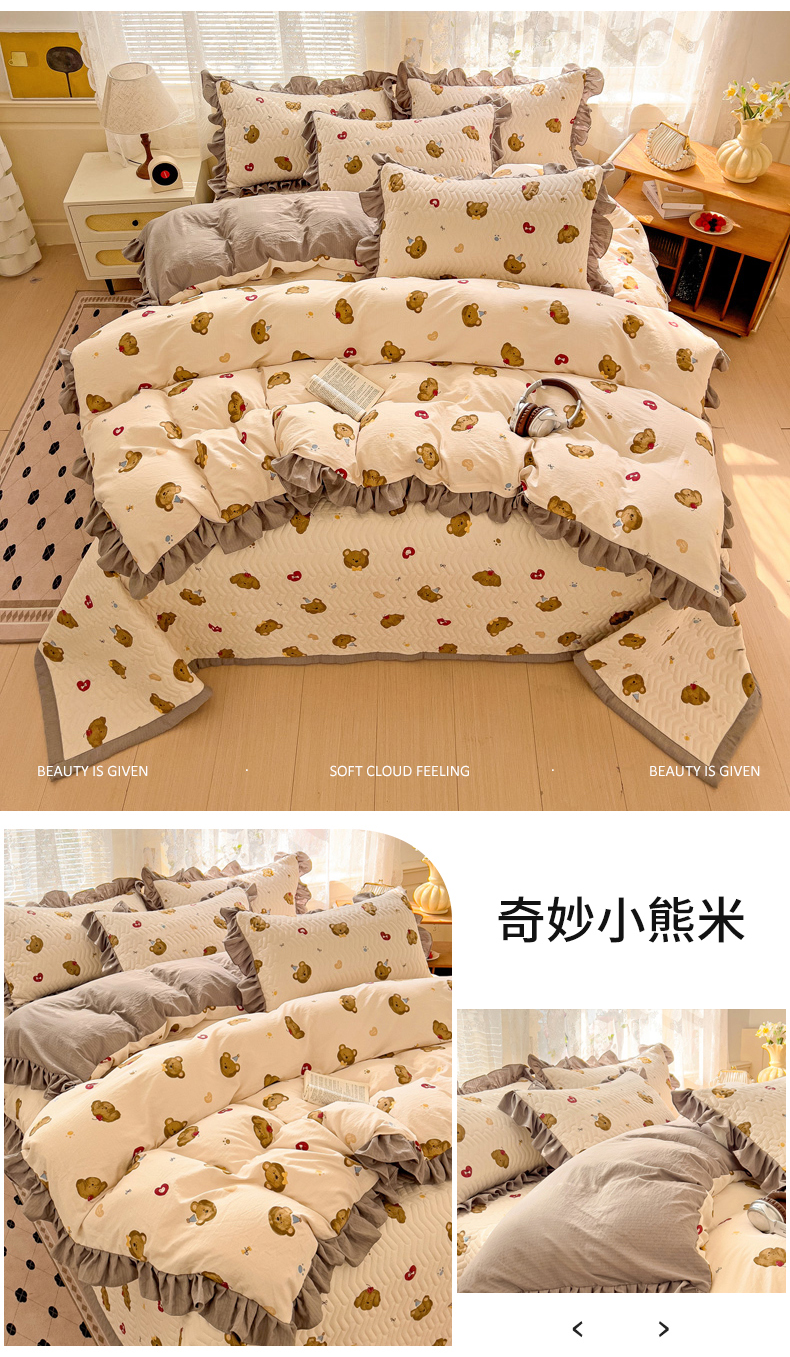 商品名称:纽缦家纺2025新款云感提花双层纱床盖韩版四件套 奇妙小熊米