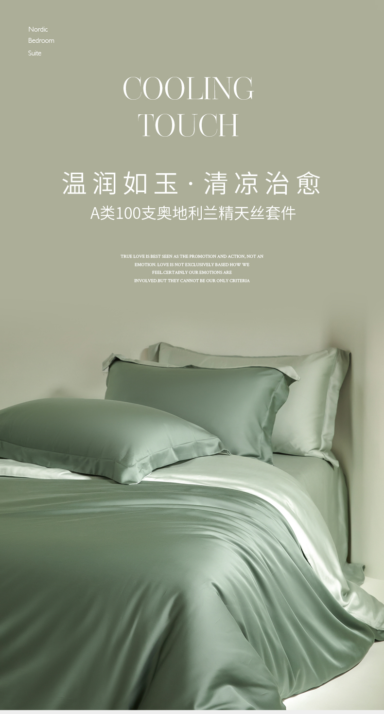 商品名称:618家纺 2025新款60SA类100支简约双拼系列进口兰精天丝四件套 天丝双拼芙绿