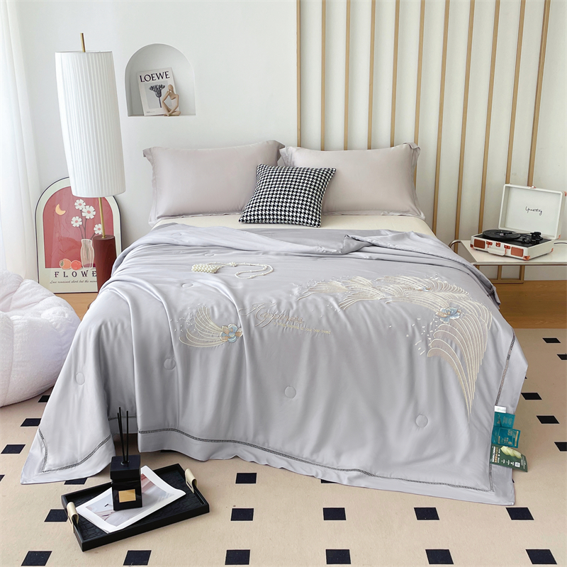 优姿家纺 2025新款60S天丝绣花镂空夏被 灰色1
