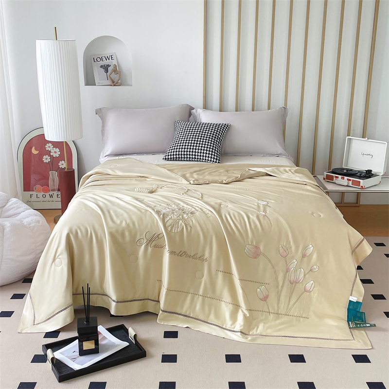 (总)优姿家纺 2025新款60S天丝绣花镂空夏被3,粉色,黄色,灰色,肉粉色,蓝色,浅绿色,黄色