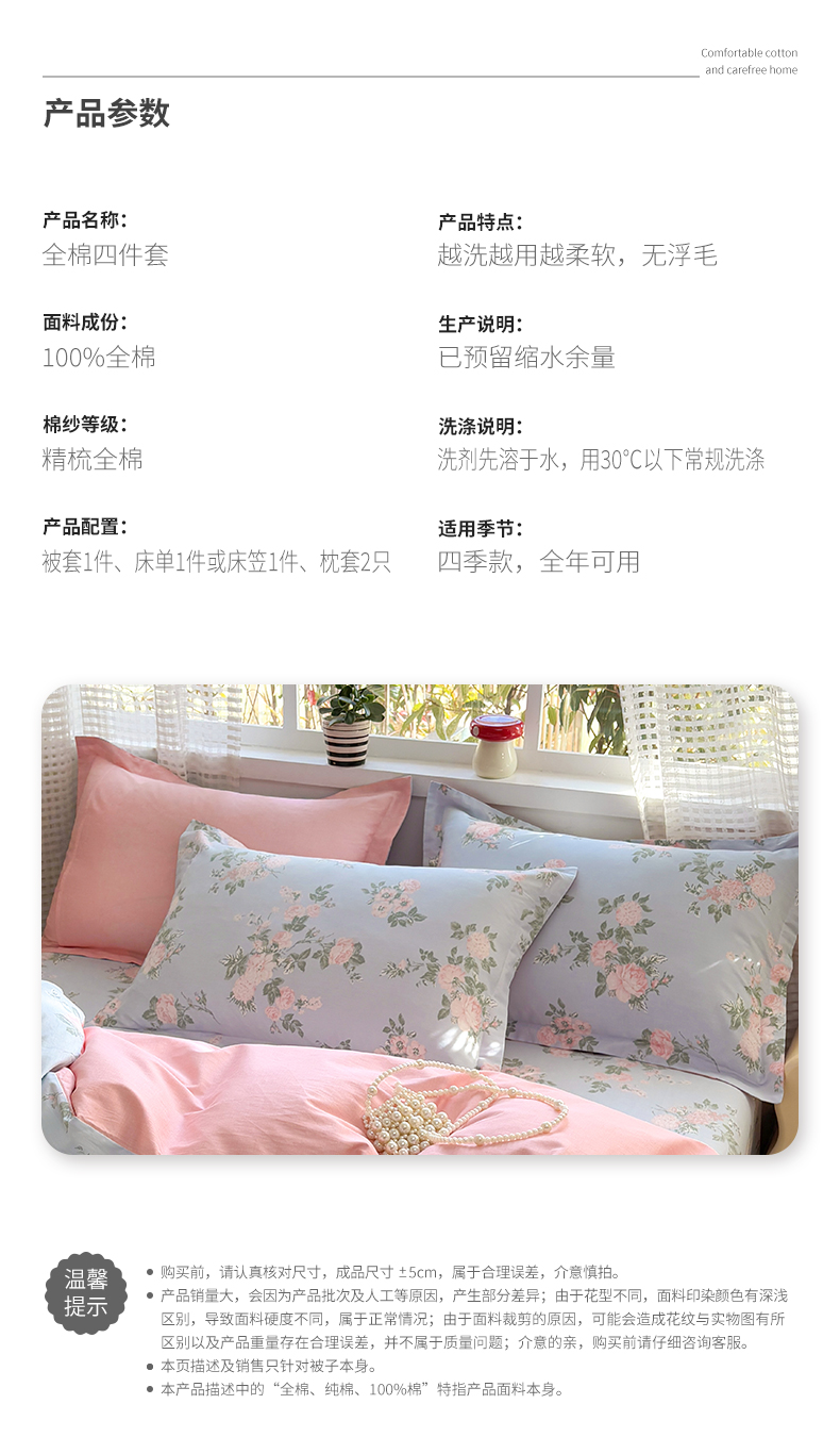 当前位置: 91家纺网 > 商品网购 > 床品套件 > 四件套 > 全棉普通四件套 > 元元被芯 2025新款40支13372全棉印花全棉四件套 悦影