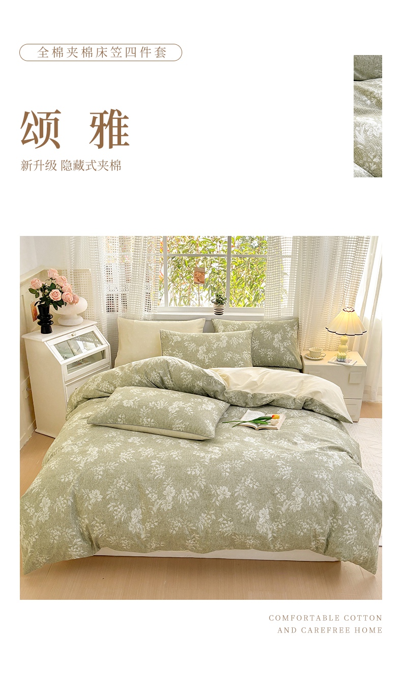 当前位置: 91家纺网 > 商品网购 > 床品套件 > 四件套 > 全棉普通四件套 > 元元被芯 2025新款40支13372全棉印花全棉夹棉床笠四件套 宁静