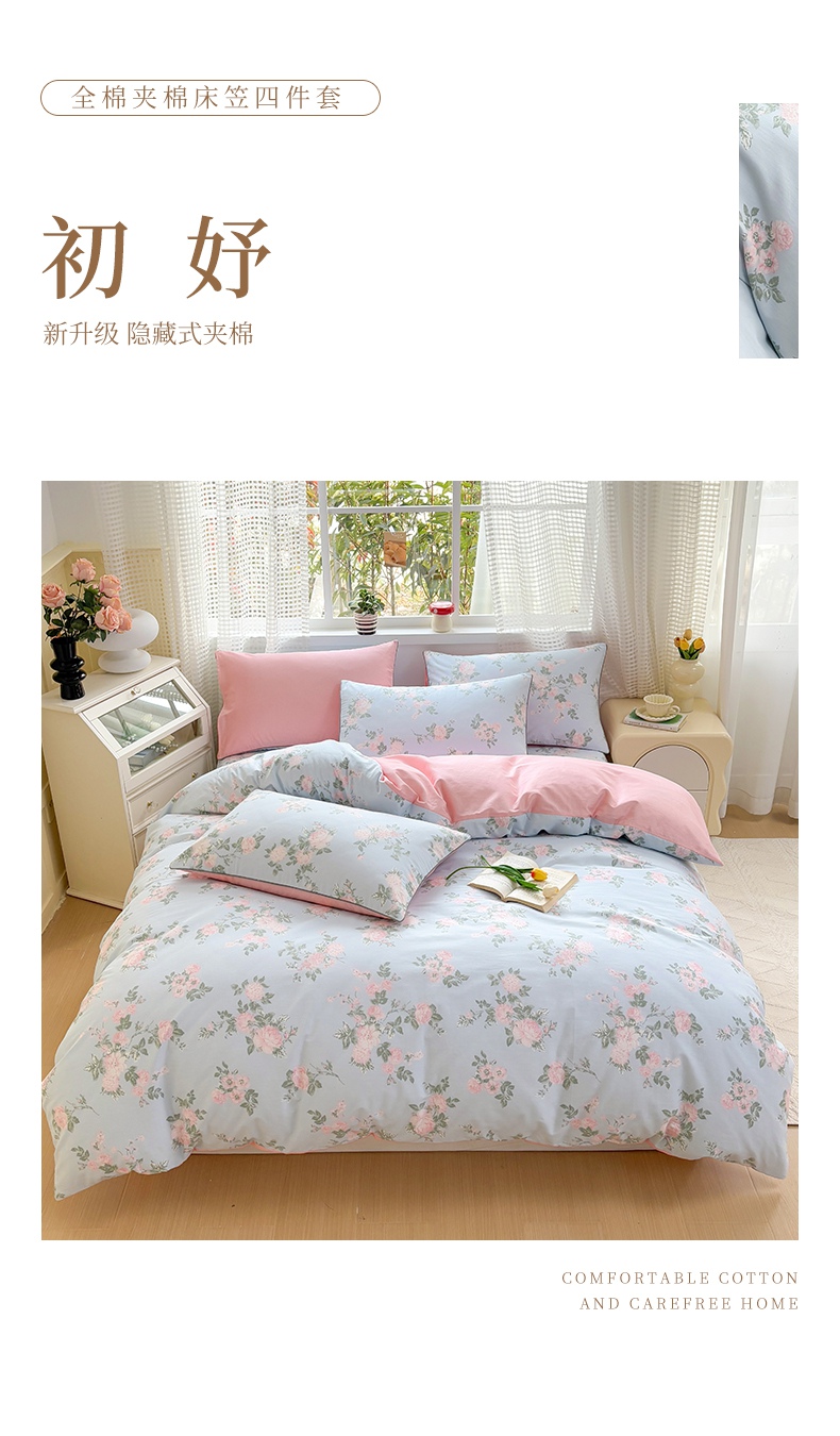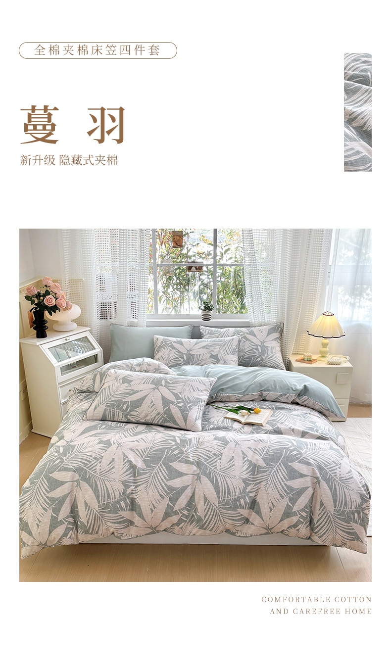当前位置: 91家纺网 > 商品网购 > 床品套件 > 四件套 > 全棉普通四件套 > 元元被芯 2025新款40支13372全棉印花全棉夹棉床笠四件套 悦影