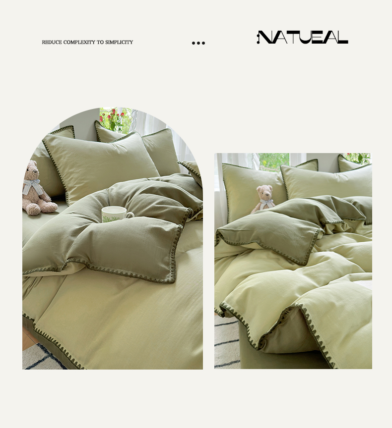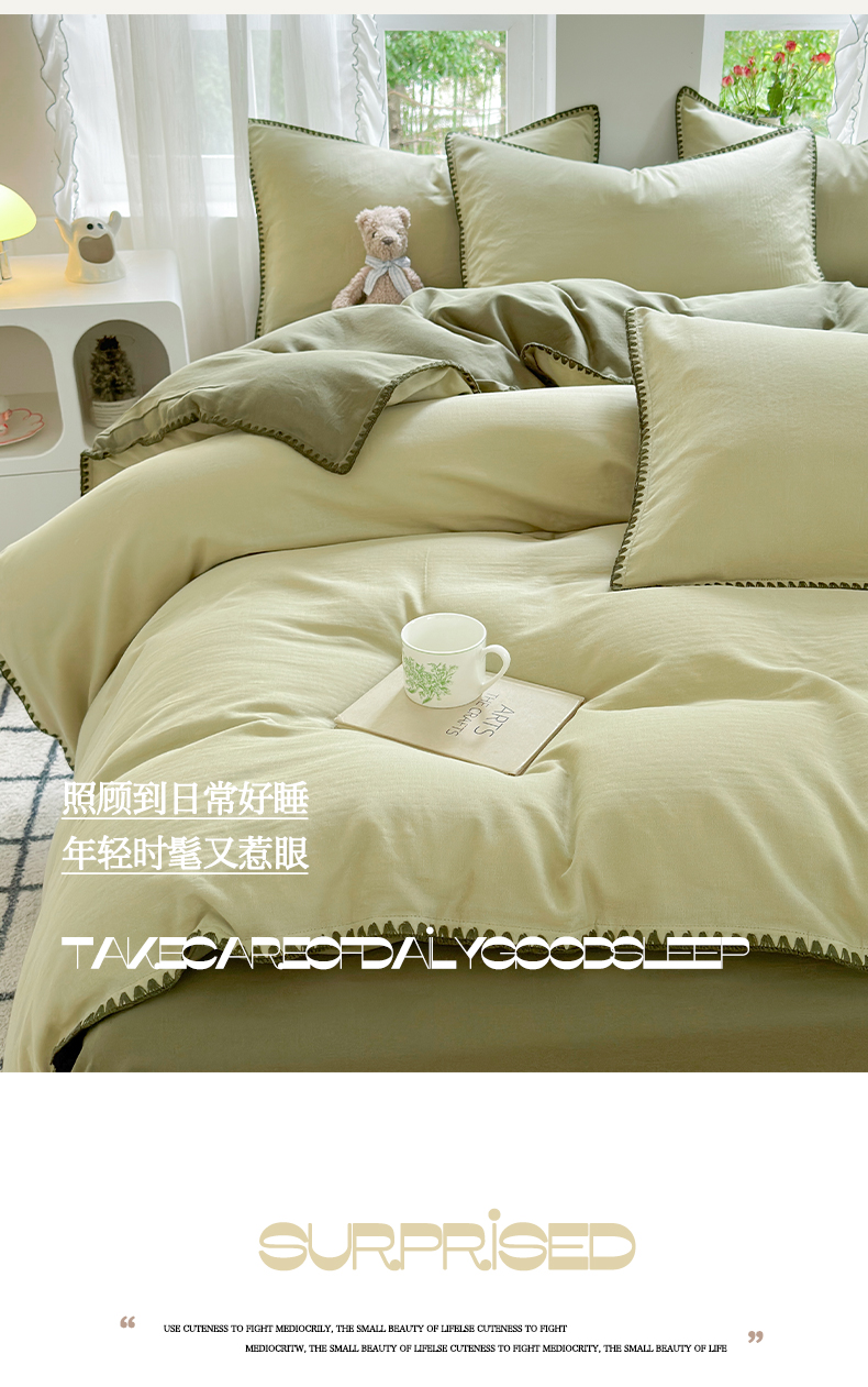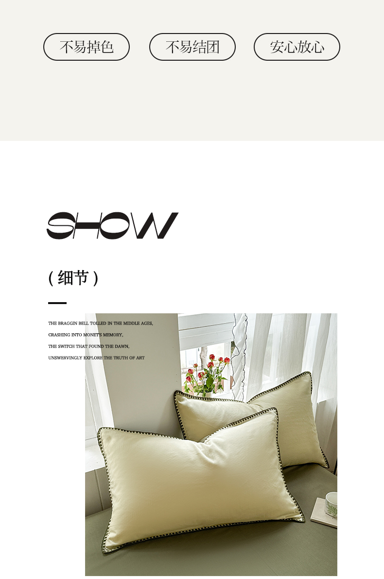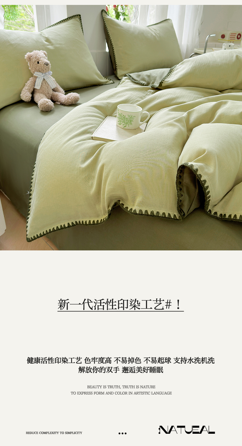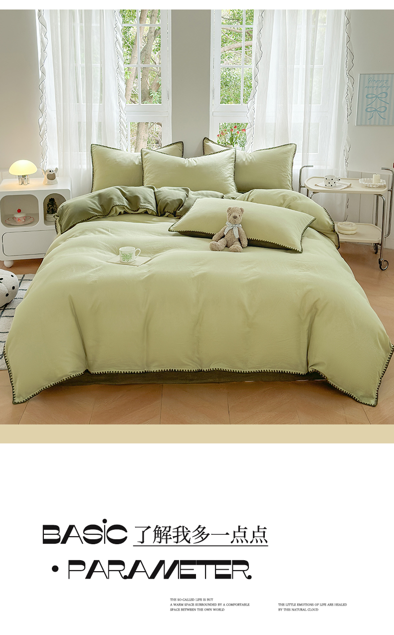 当前位置: 91家纺网 > 商品网购 > 床品套件 > 四件套 > 全棉普通四件套 > 莱登卡奴 2025新款A类全棉双层纱纯色贝壳绣系列四件套 双层纱双拼绿