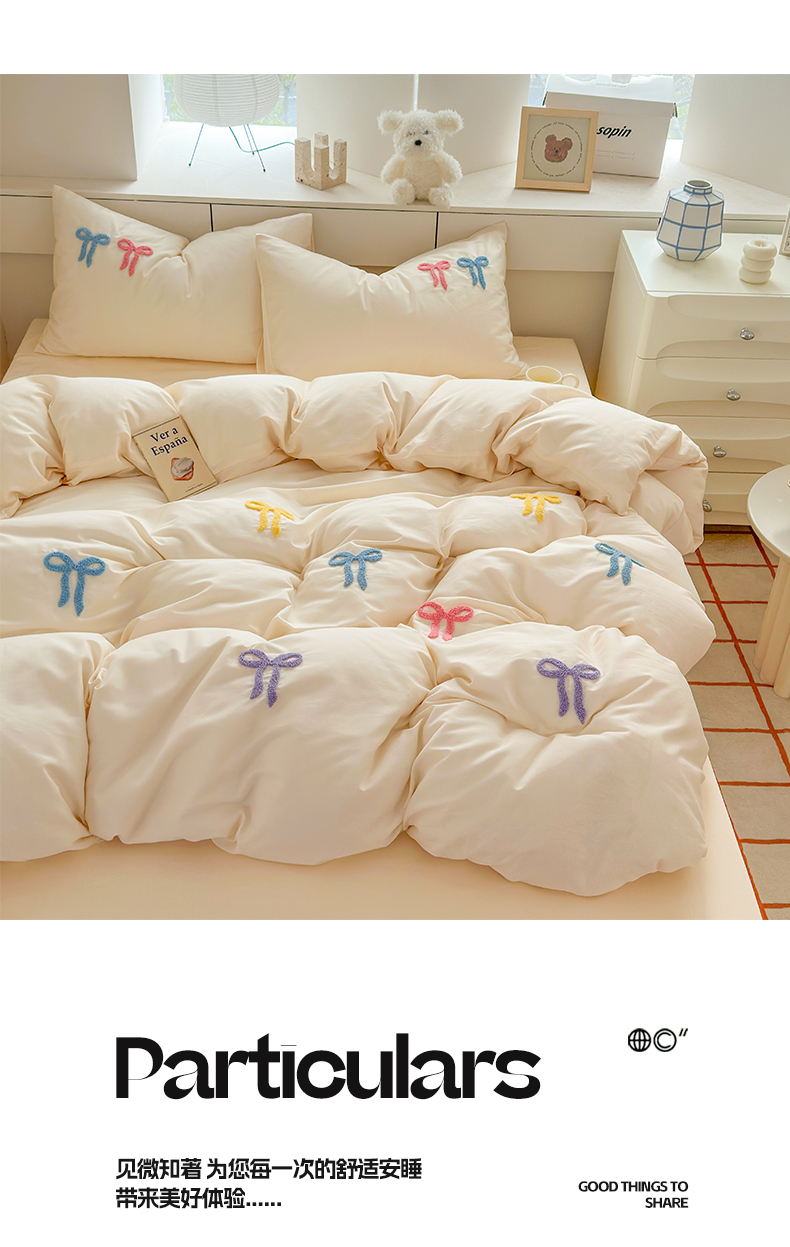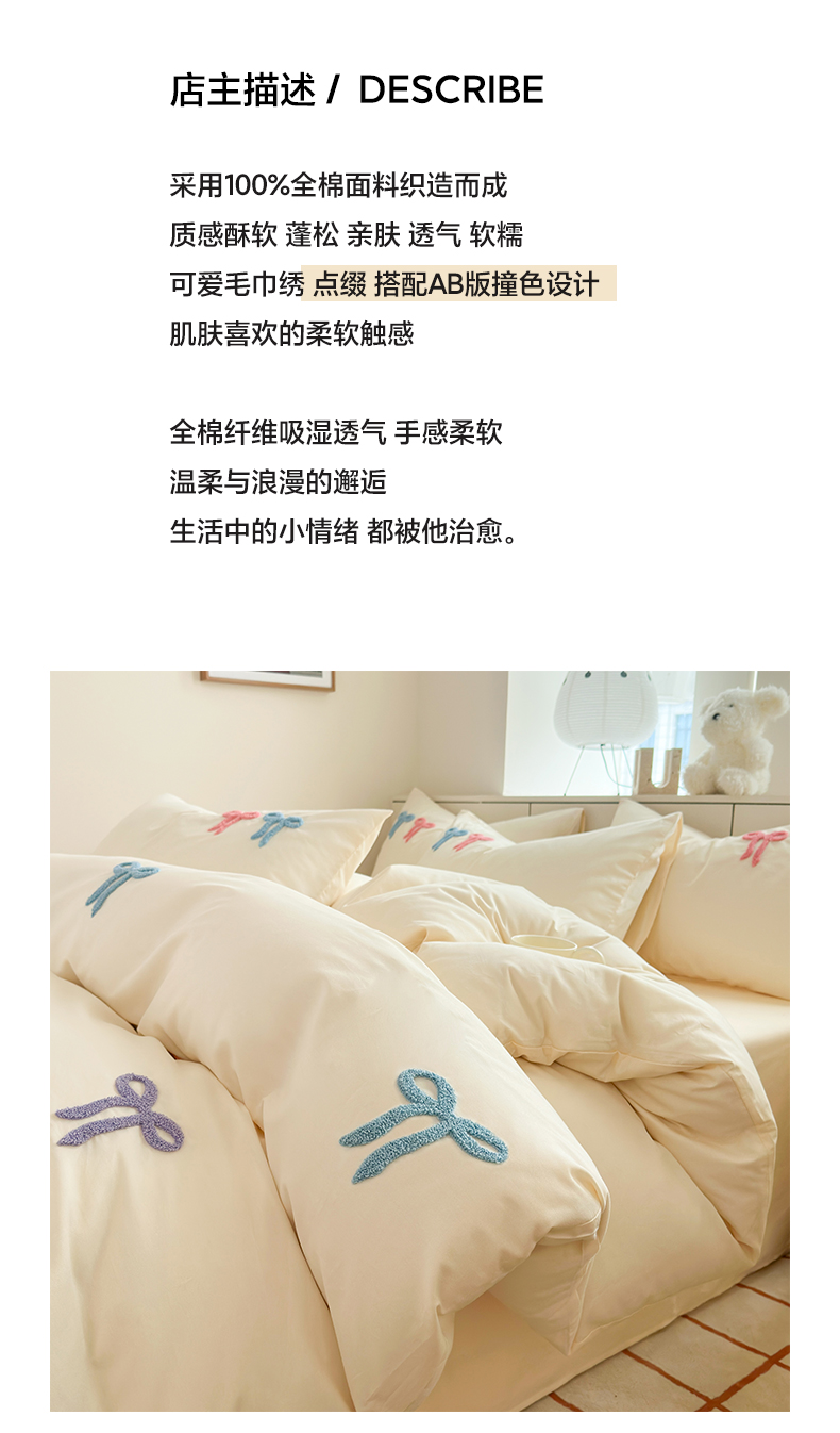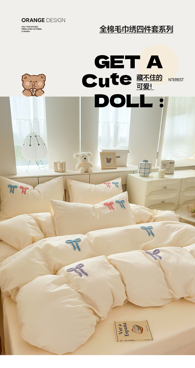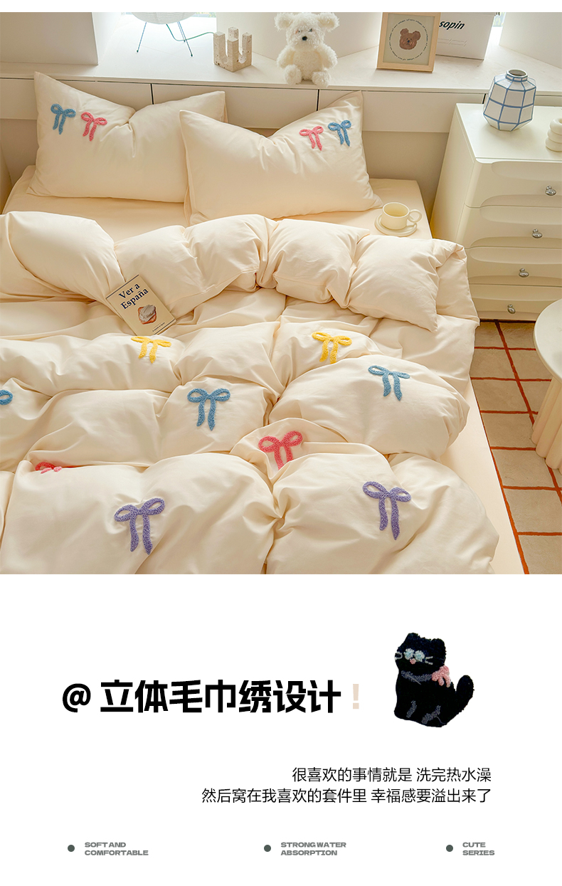 当前位置: 91家纺网 > 商品网购 > 床品套件 > 四件套 > 全棉普通四件套 > 莱登卡奴 2025新款A类全棉13372毛巾绣四件套 奶昔白蝴蝶结