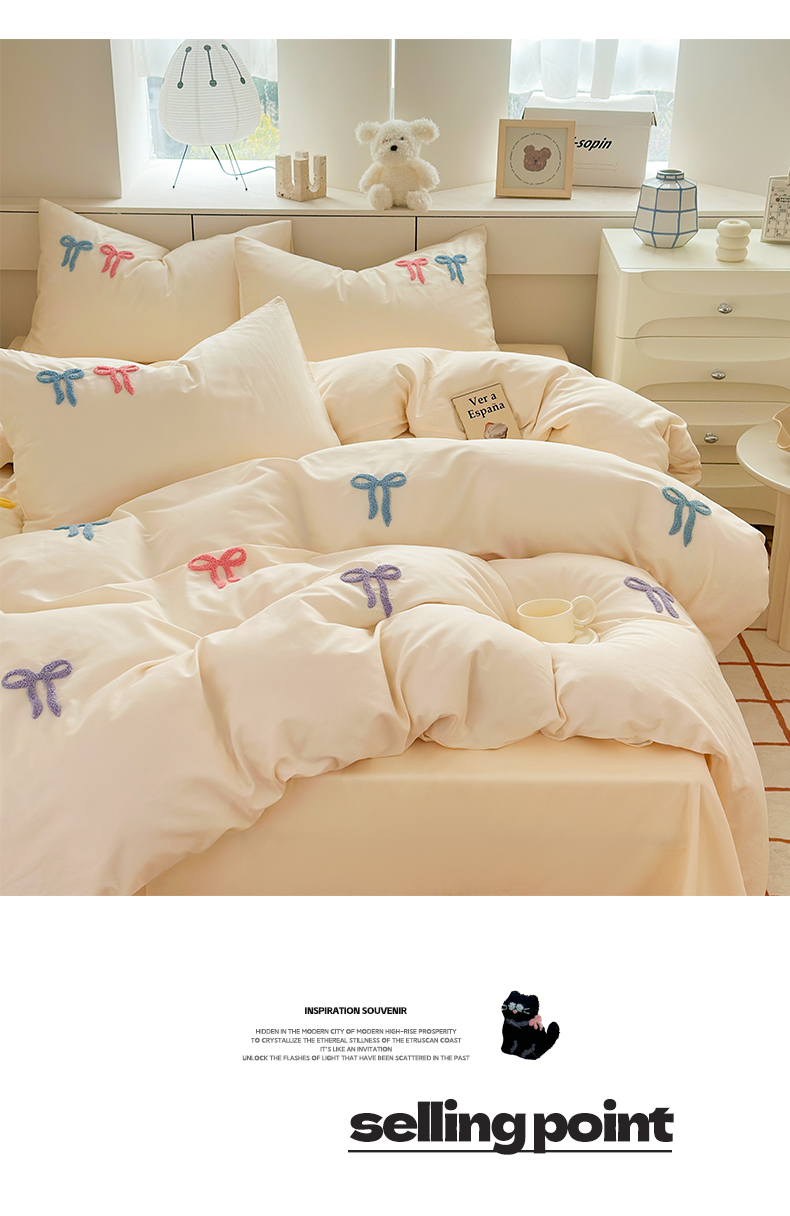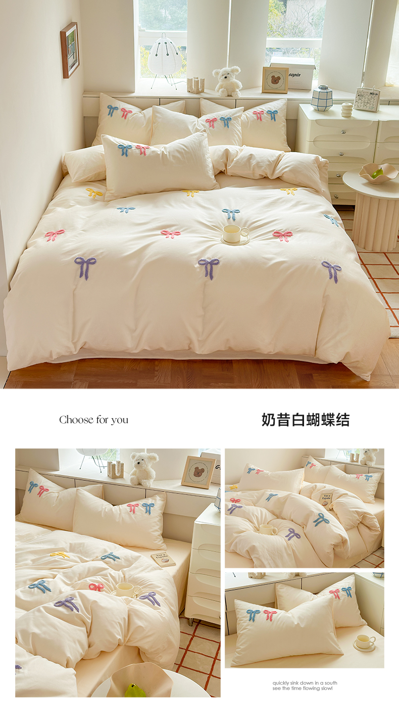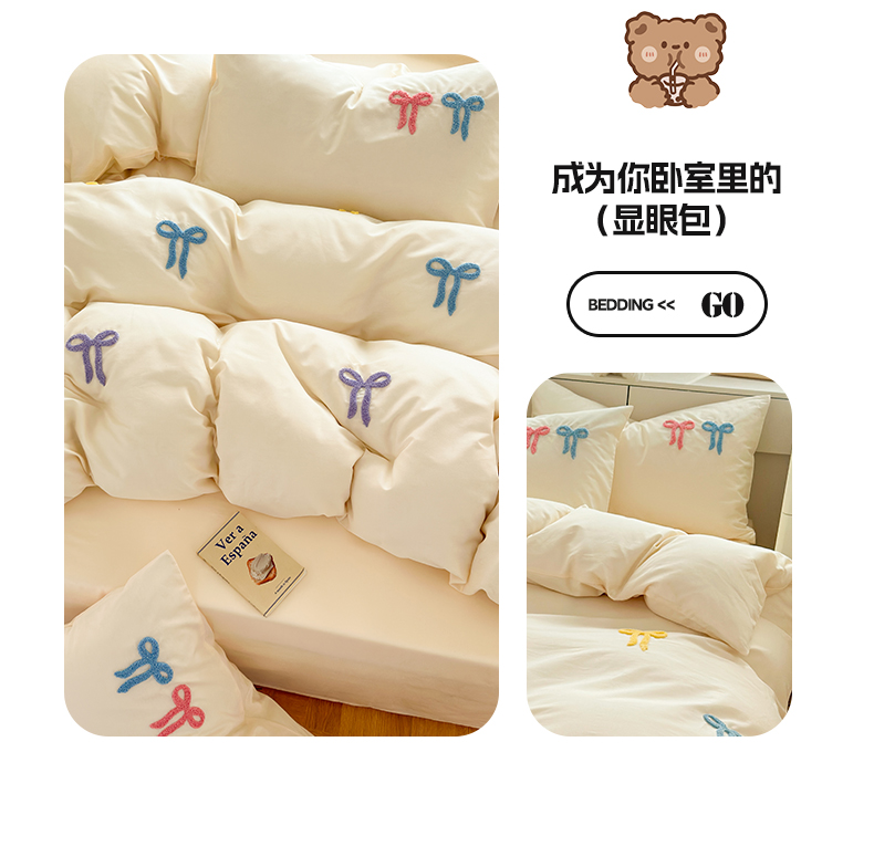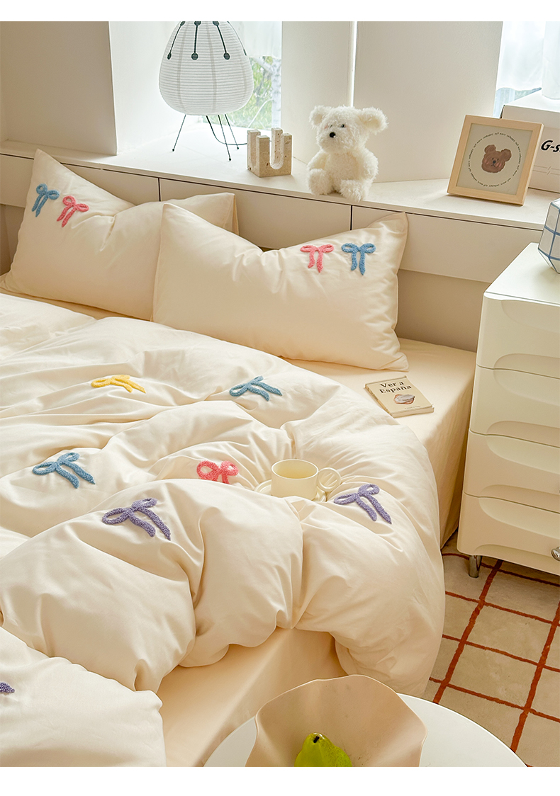 当前位置: 91家纺网 > 商品网购 > 床品套件 > 四件套 > 全棉普通四件套 > 莱登卡奴 2025新款A类全棉13372毛巾绣四件套 奶昔白蝴蝶结