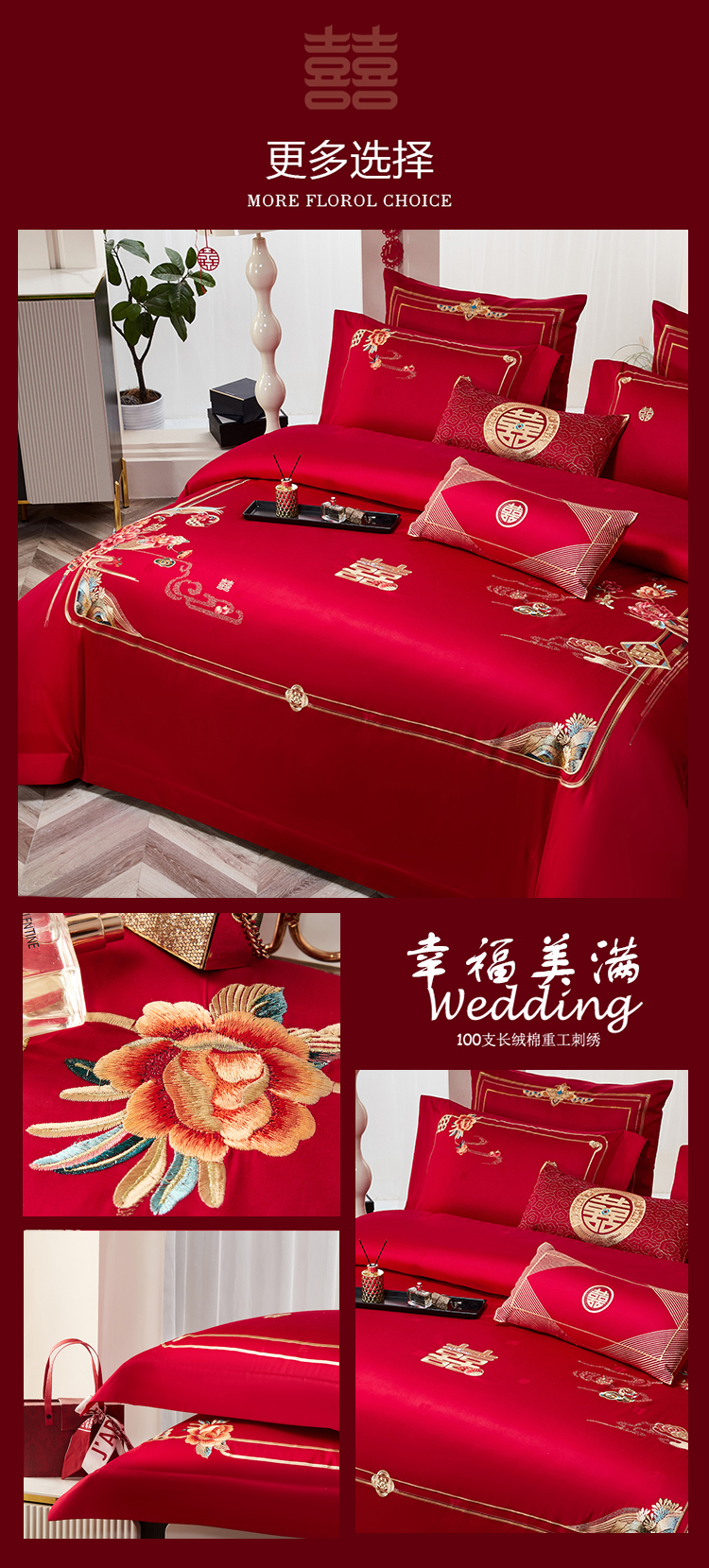 当前位置: 91家纺网 > 商品网购 > 床品套件 > 四件套 > 婚庆四件套 > 蒂爵2025新款婚庆四件套A版长绒棉绣花 B版100长绒棉(加大+20元) 幸福美满