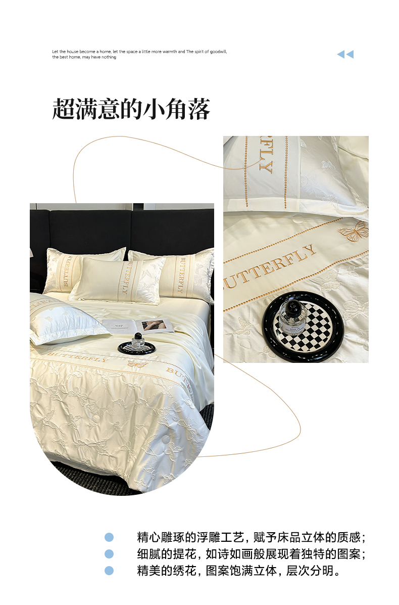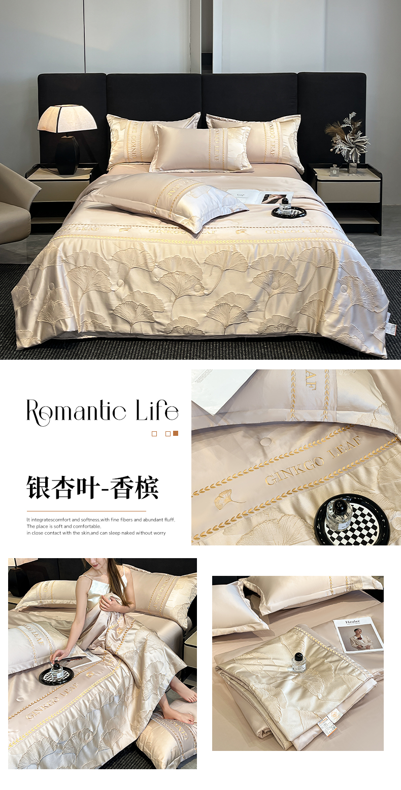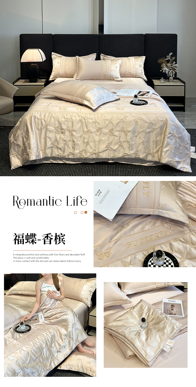 当前位置: 91家纺网 > 商品网购 > 床品套件 > 四件套 > 夏被四件套 > 宇航家纺 2025新款水洗真丝浮雕提花绣花夏被四件套 艾玛-香槟