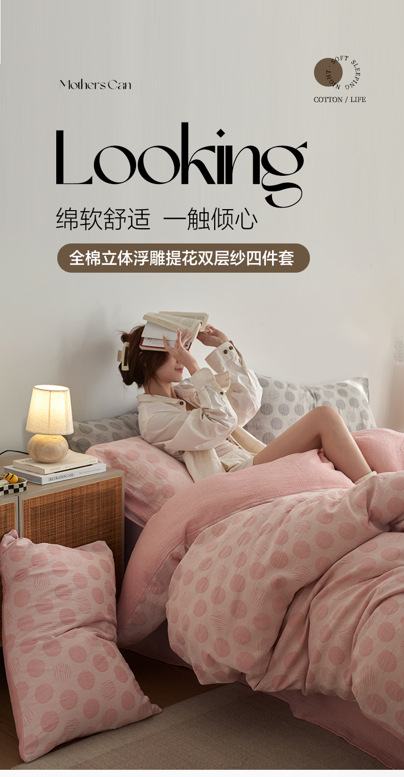 (总)艾咪 全棉立体浮雕提花双层纱四件套