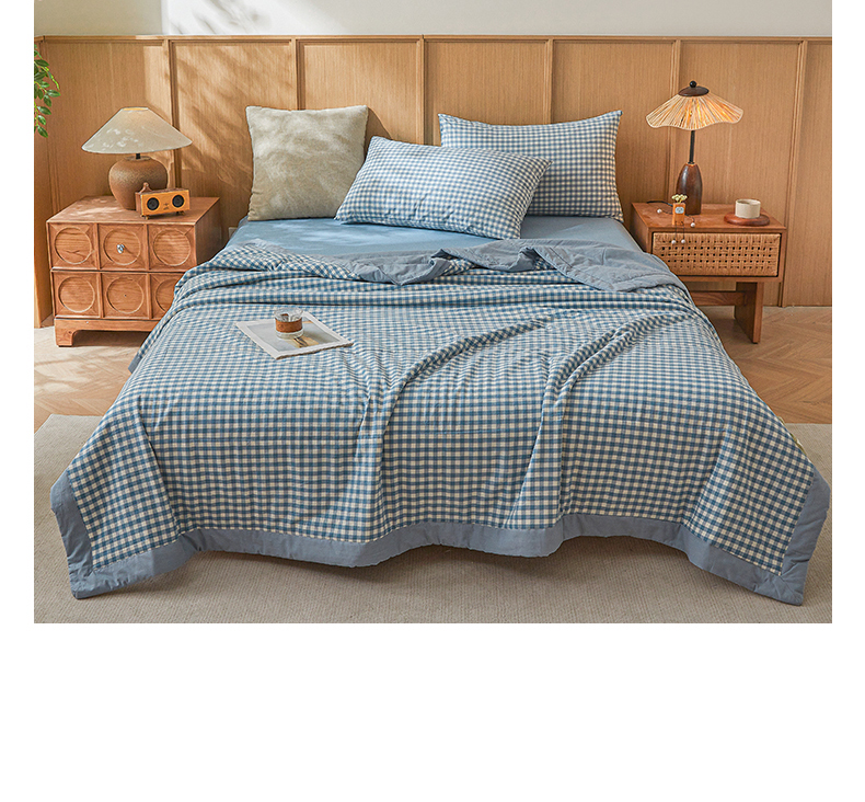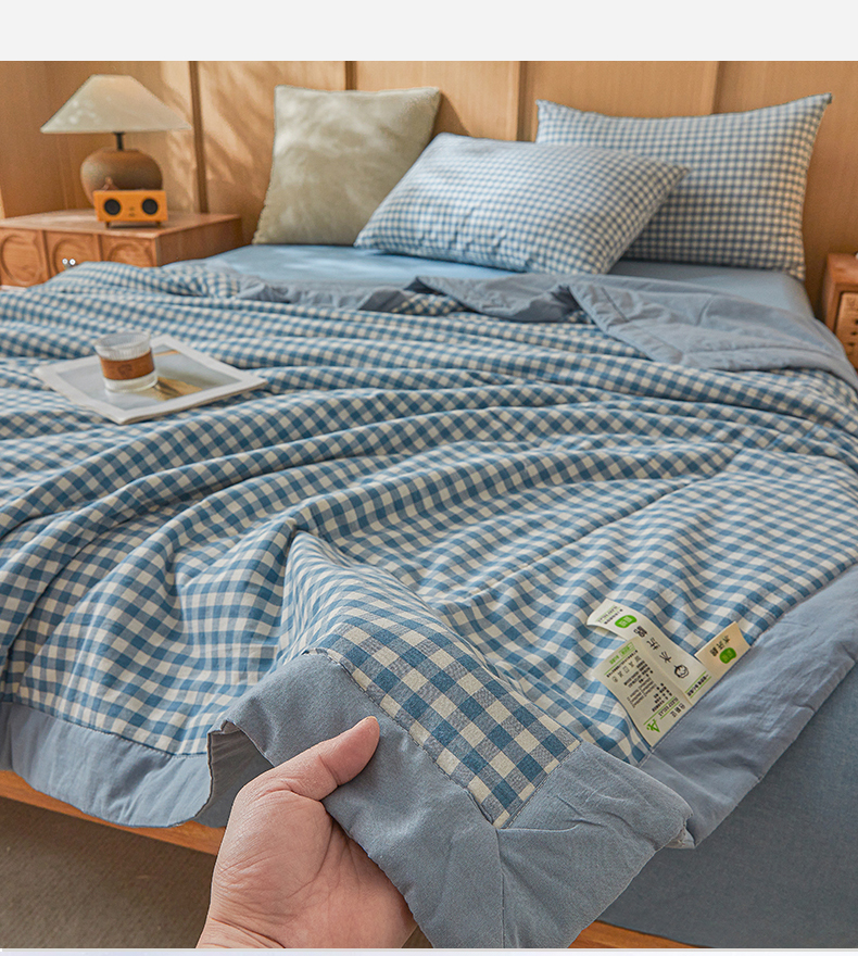 商品名称:猎鹿人家纺 A类水洗棉新疆棉花夏被 蓝小格