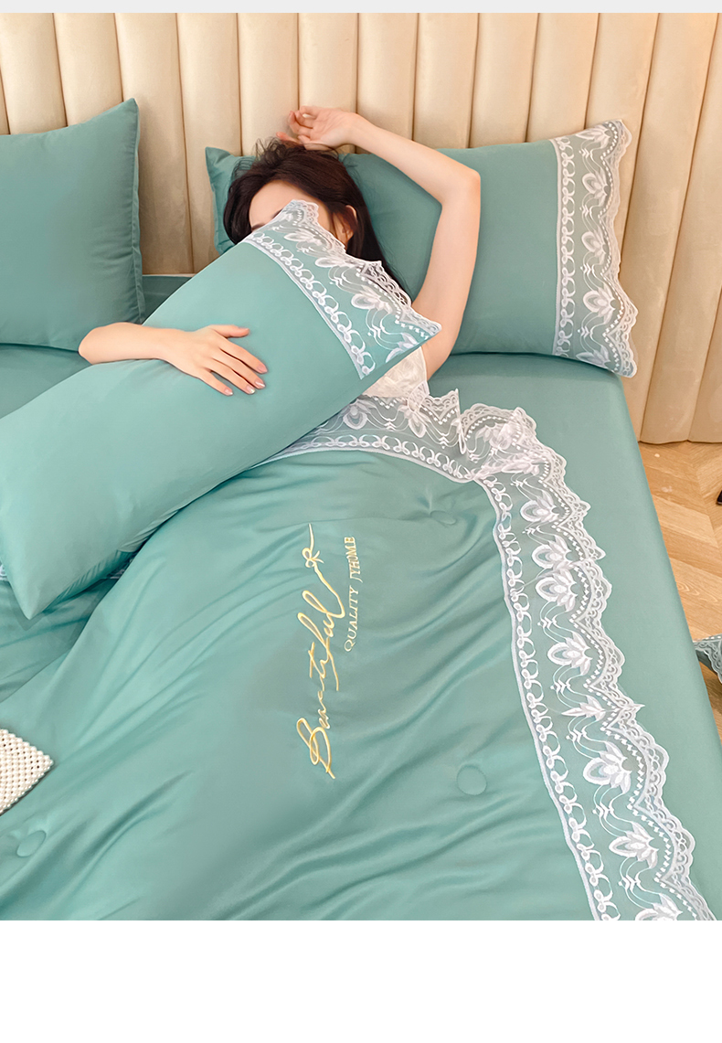 益多眠 2026新款水洗天丝蕾丝花边夏被四件套轻奢夏被花边夏被-公主风 公主-琉璃绿