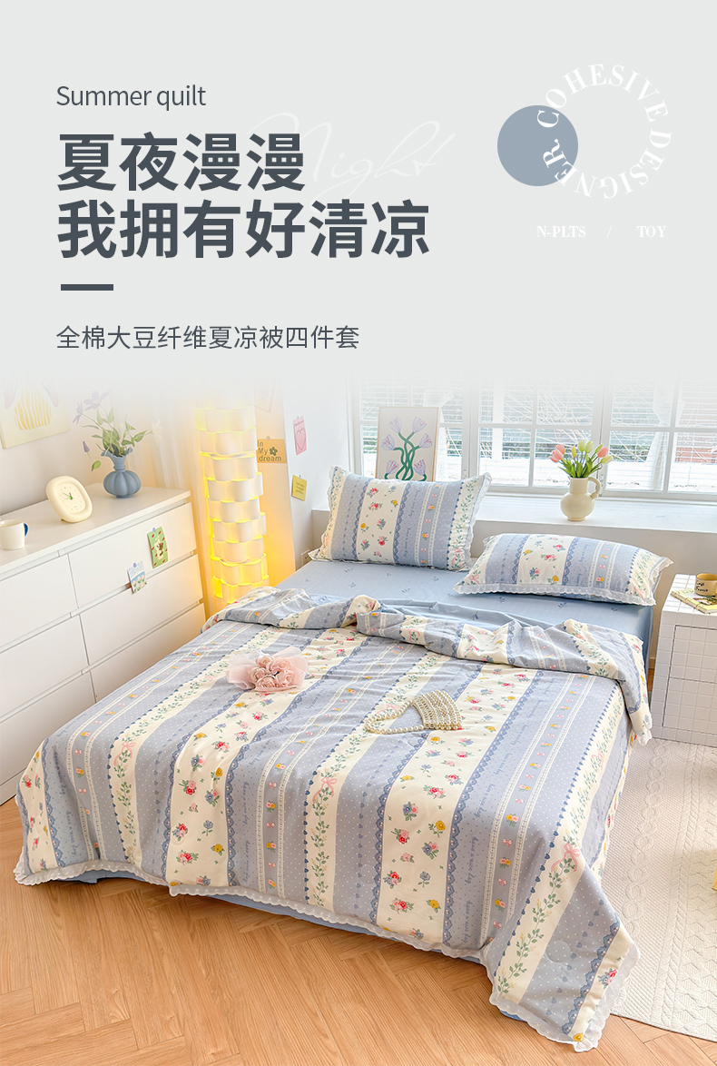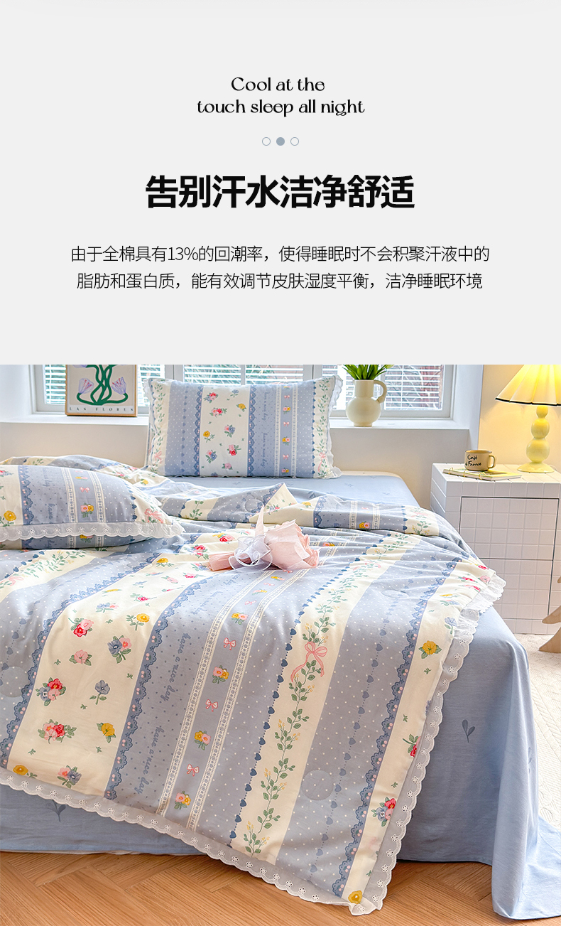 被窝家纺 2025新款全棉花边大豆夏被四件套 安暖入夏