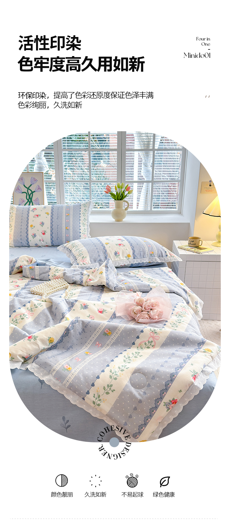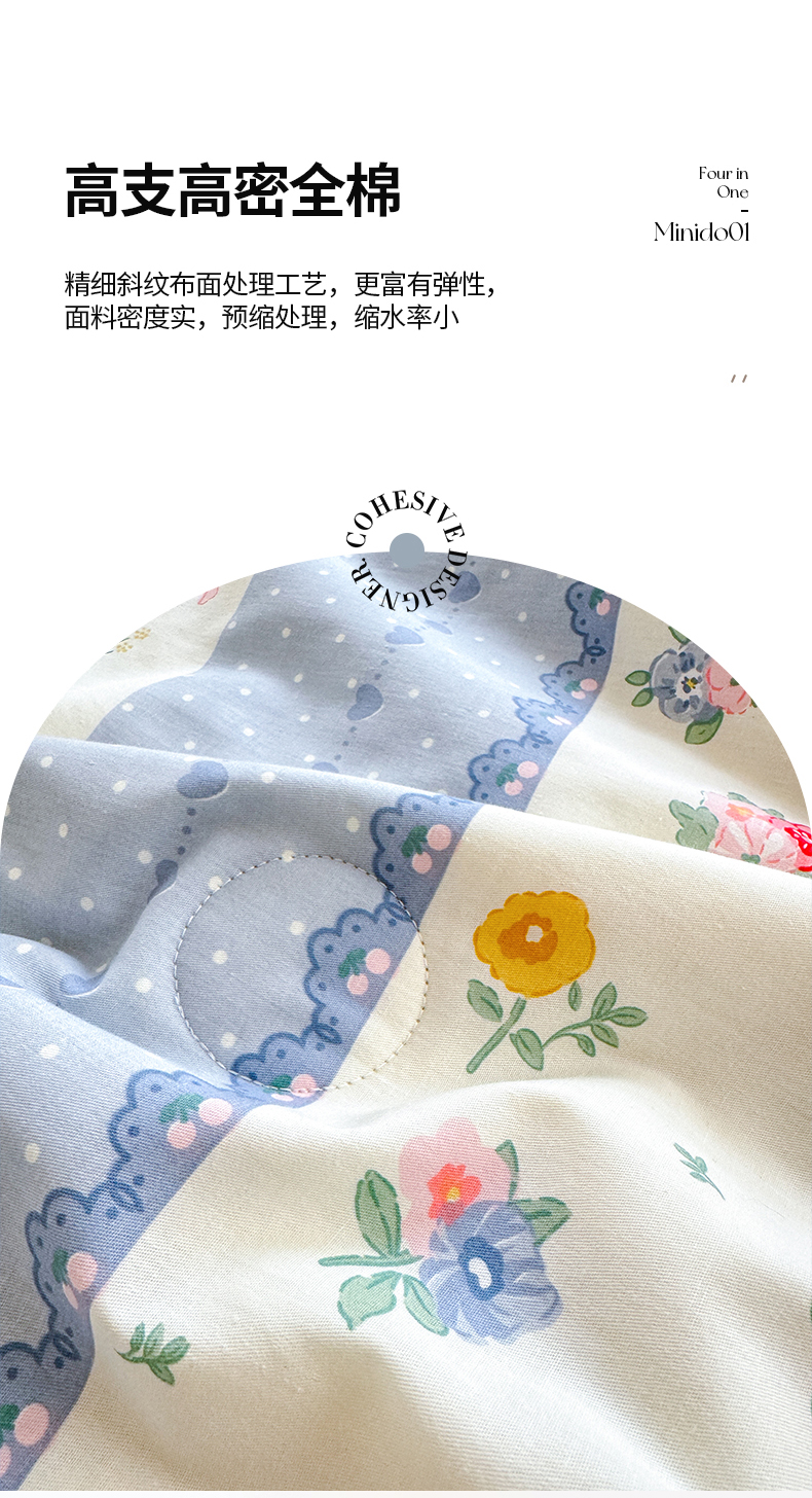 商品名称:被窝家纺 2025新款全棉花边大豆夏被四件套 安暖入夏