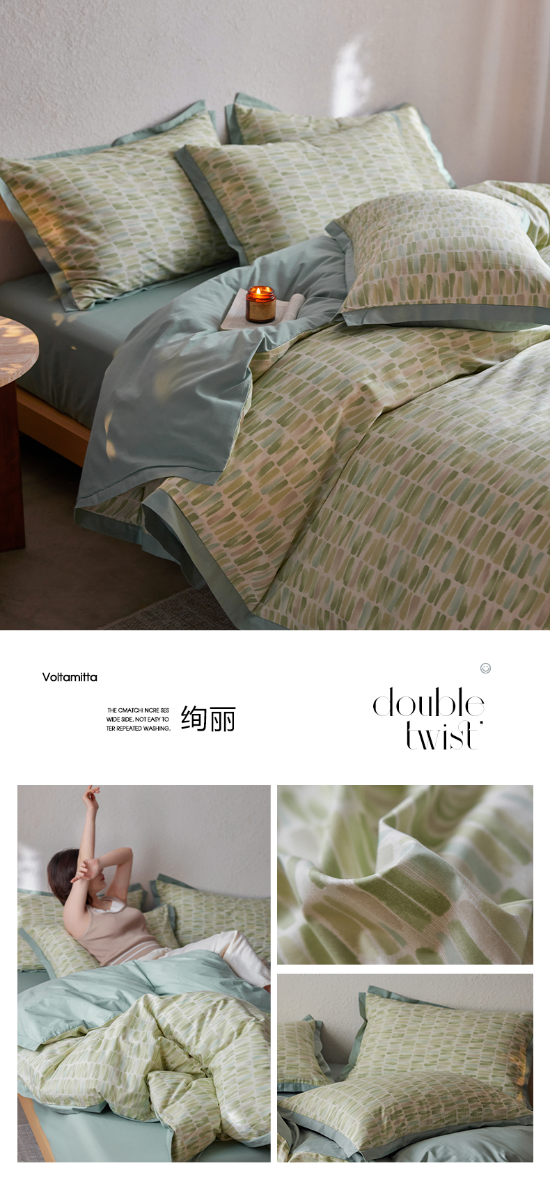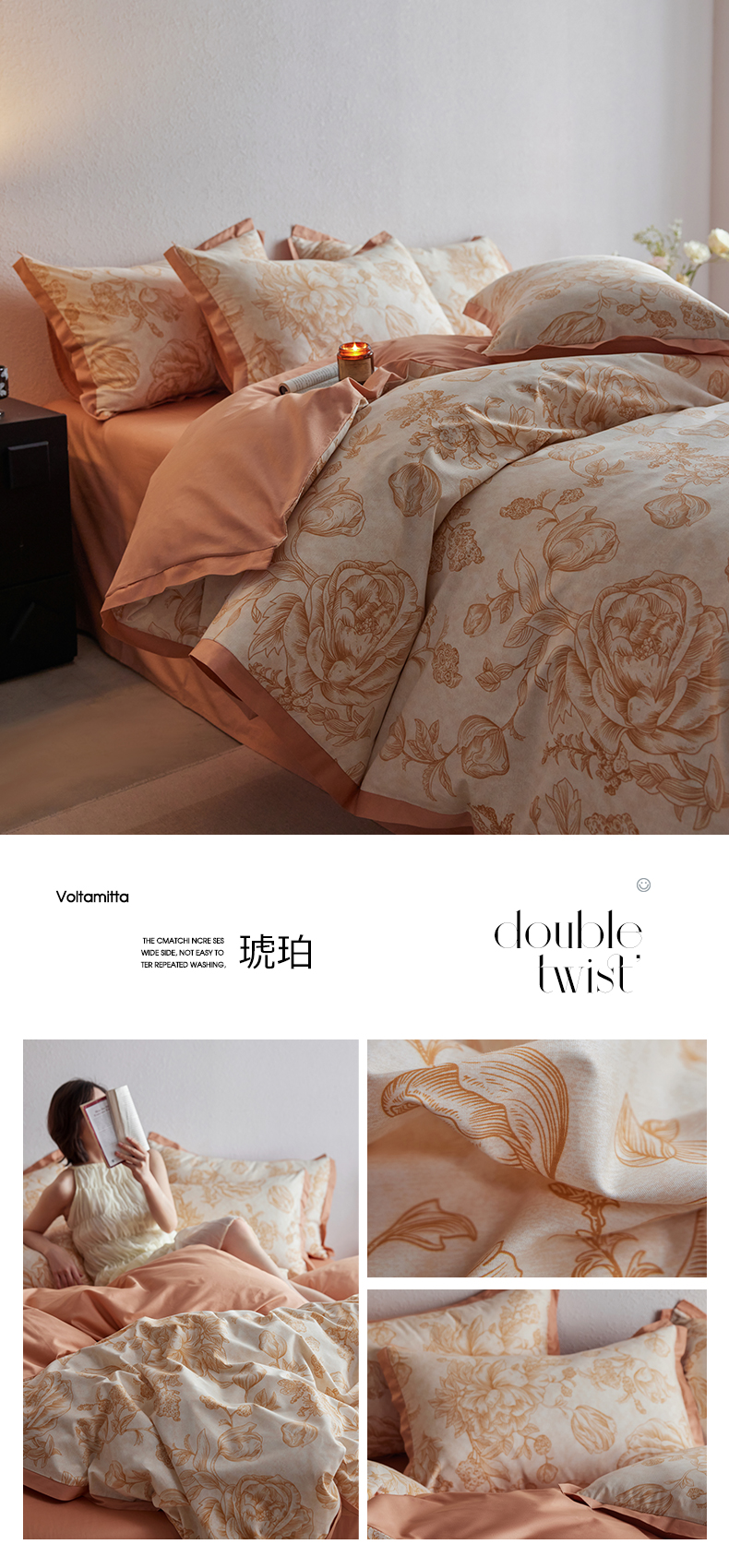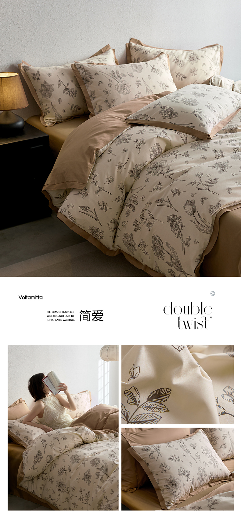 当前位置: 91家纺网 > 商品网购 > 床品套件 > 四件套 > 其它四件套 > 千朵森2025 新款 A类全棉印花拼角四件套 简爱