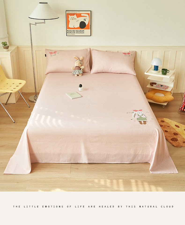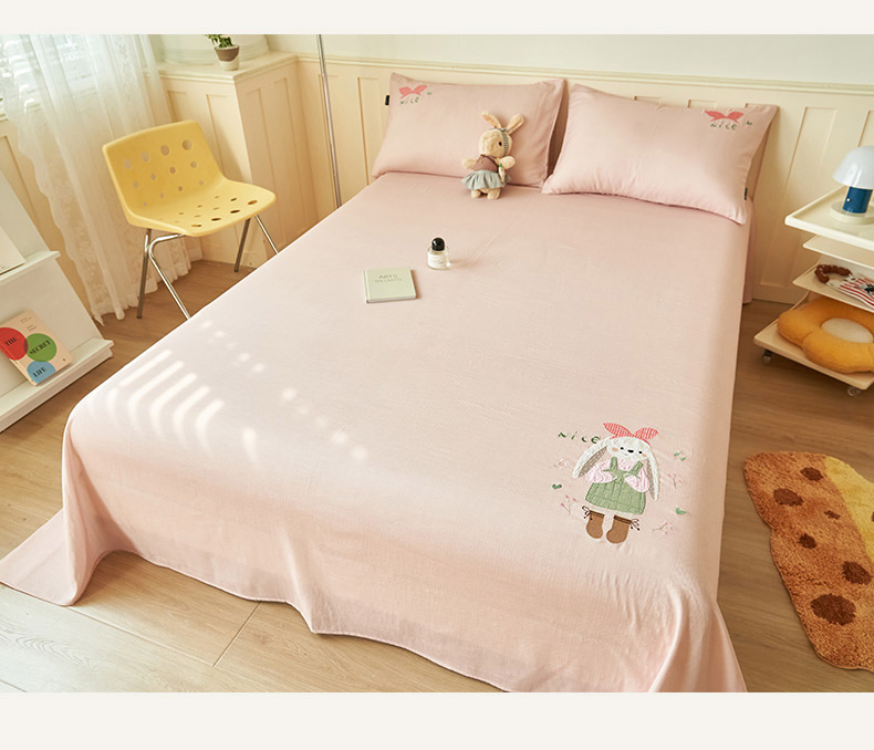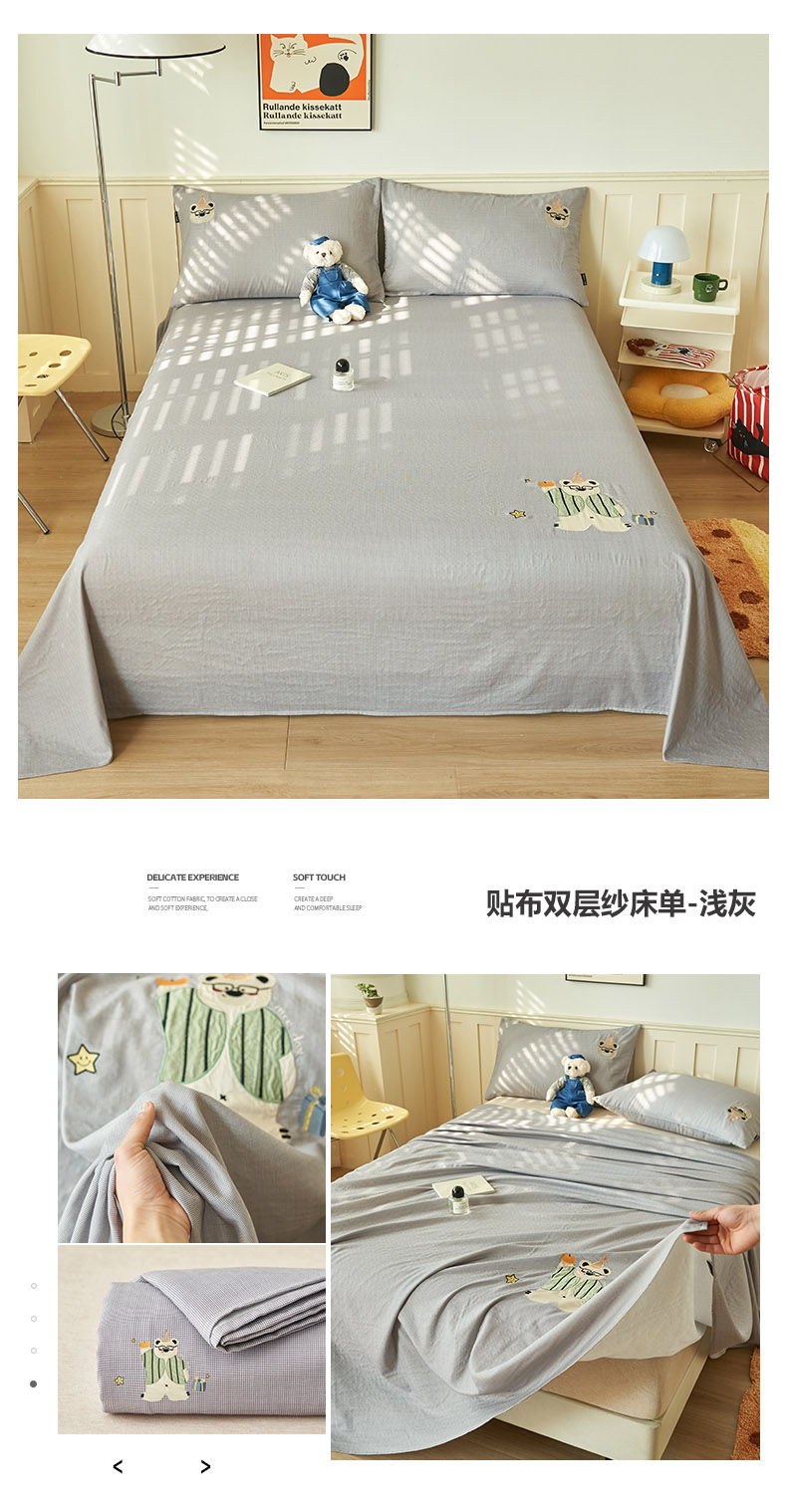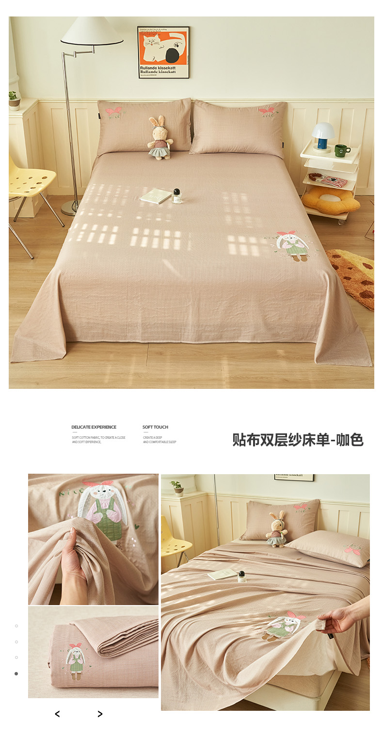 寐绸家纺 2025新款纯棉双层纱贴布绣单床单 贴布双层纱床单-暗粉