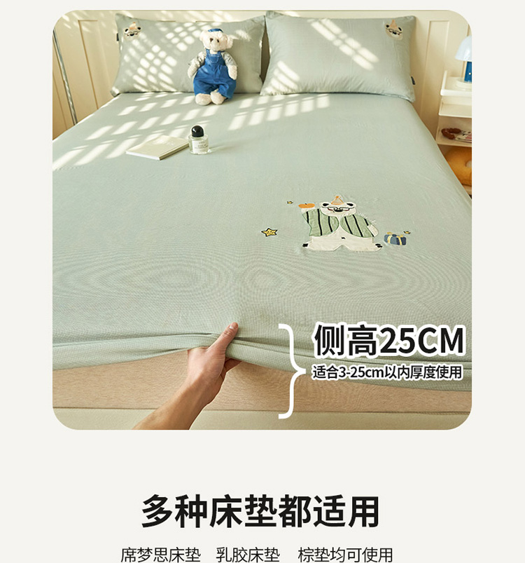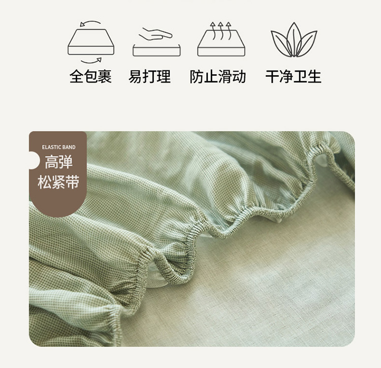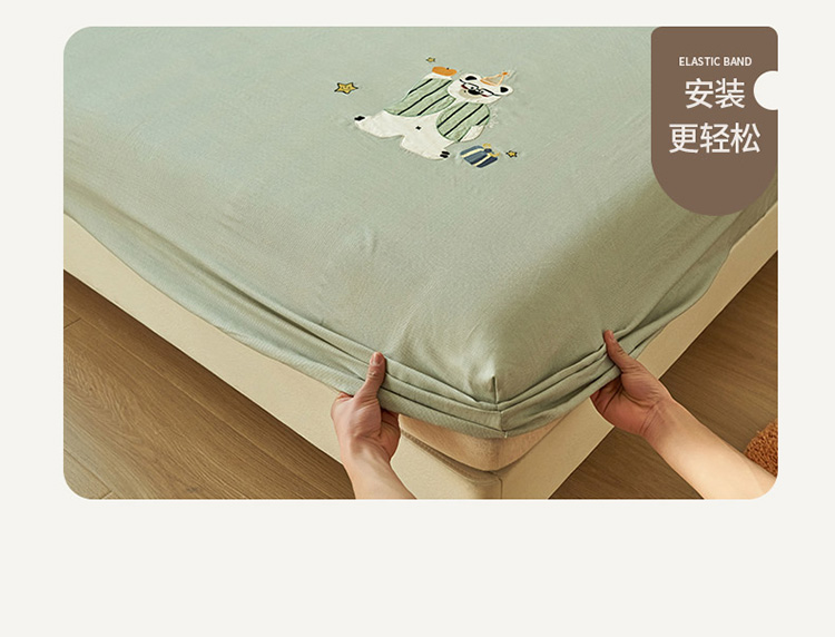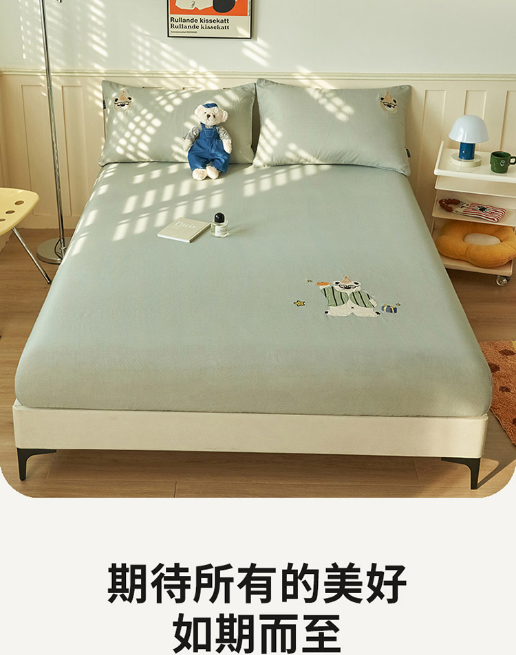 • 91家纺网 家纺一手货源 找家纺 寐绸家纺 2025新款纯棉双层纱贴布绣单床笠 贴布双层纱床笠-浅绿