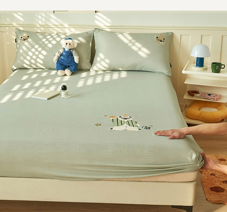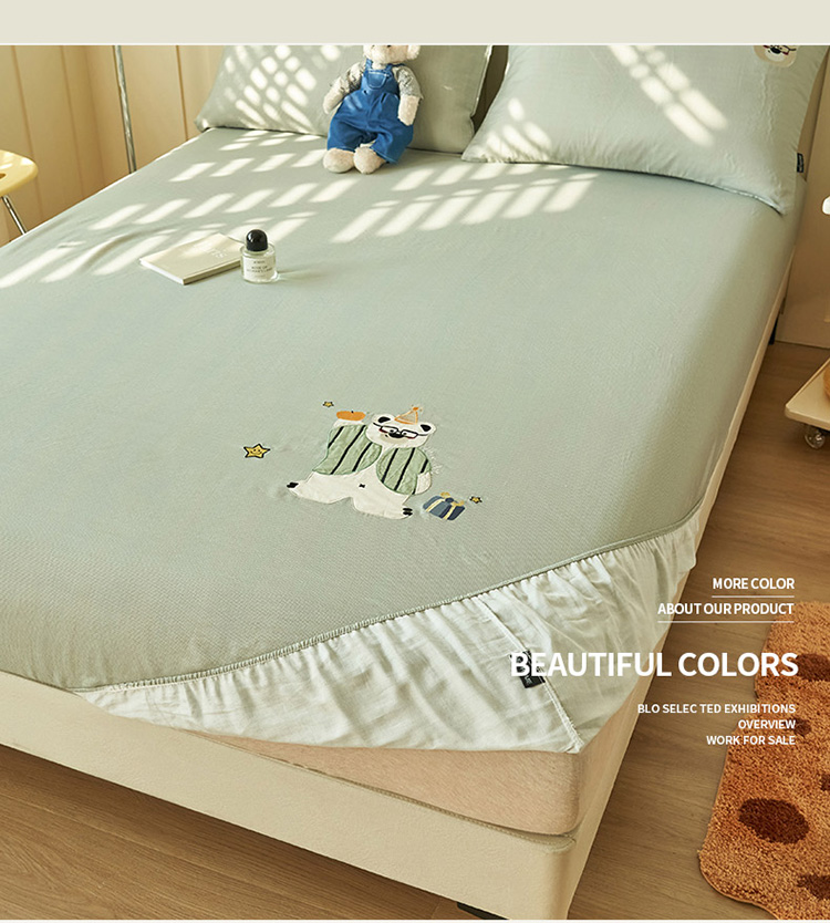 寐绸家纺 2025新款纯棉双层纱贴布绣单床笠 贴布双层纱床笠-浅绿