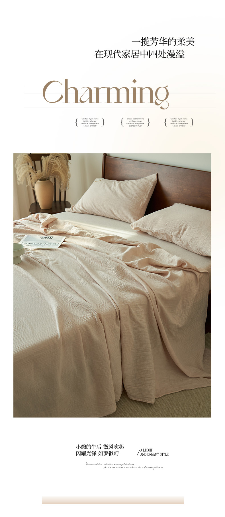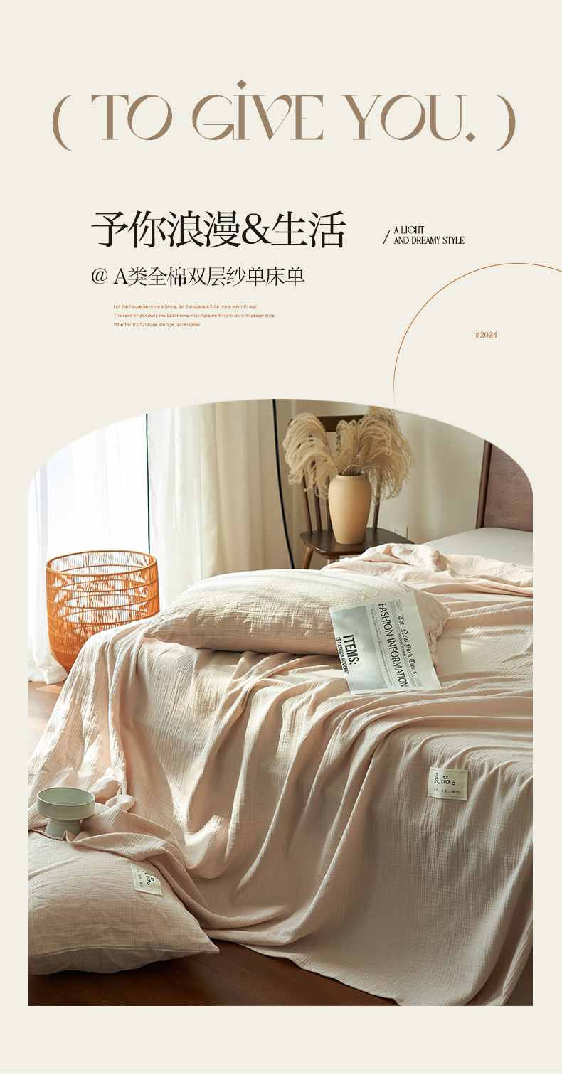 当前位置: 91家纺网 > 商品网购 > 床上用品 > 床单 > 寐绸家纺 2025新款纯棉双层纱单床单 双层纱床单-浅驼