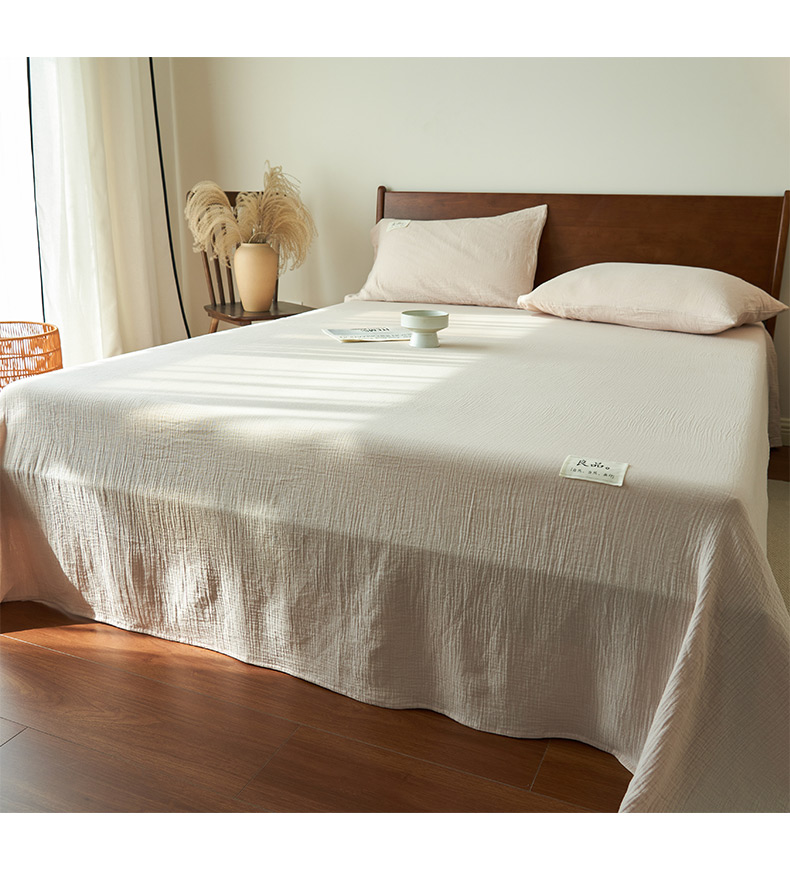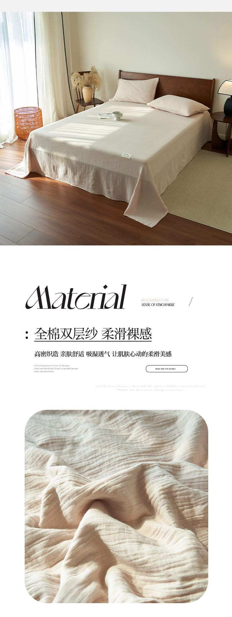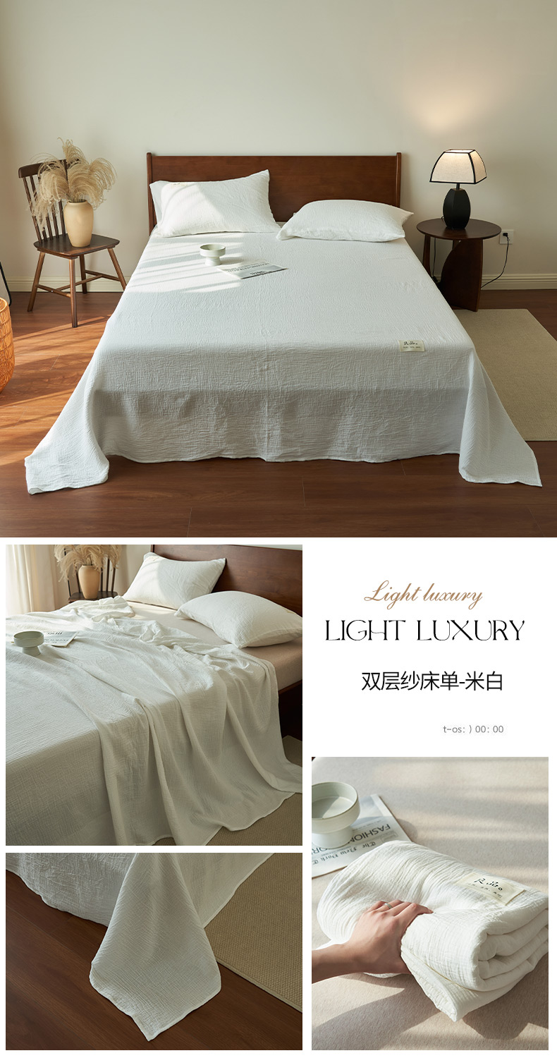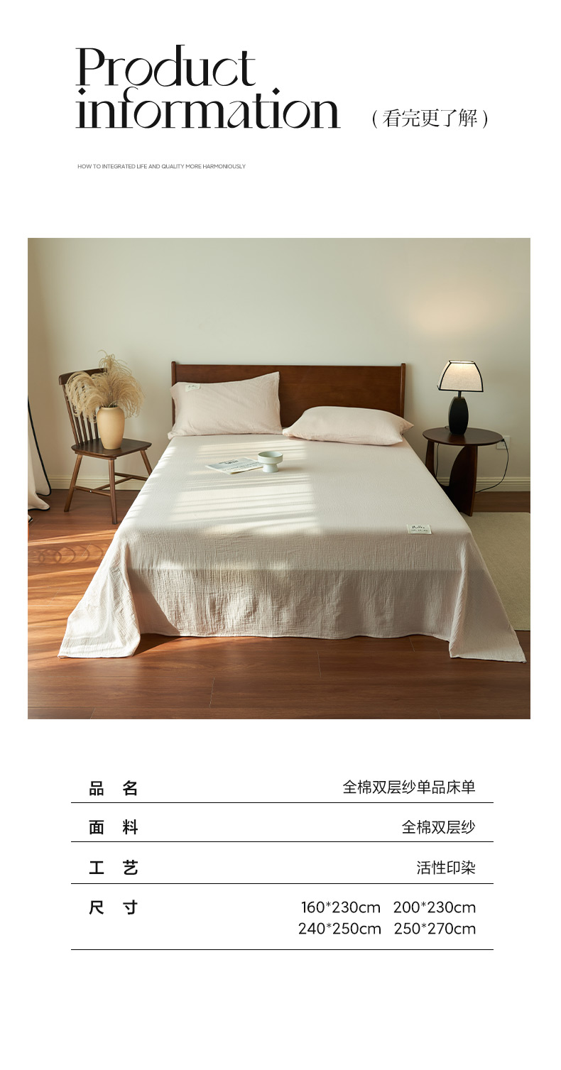 寐绸家纺 2025新款纯棉双层纱单床单 双层纱床单-浅驼