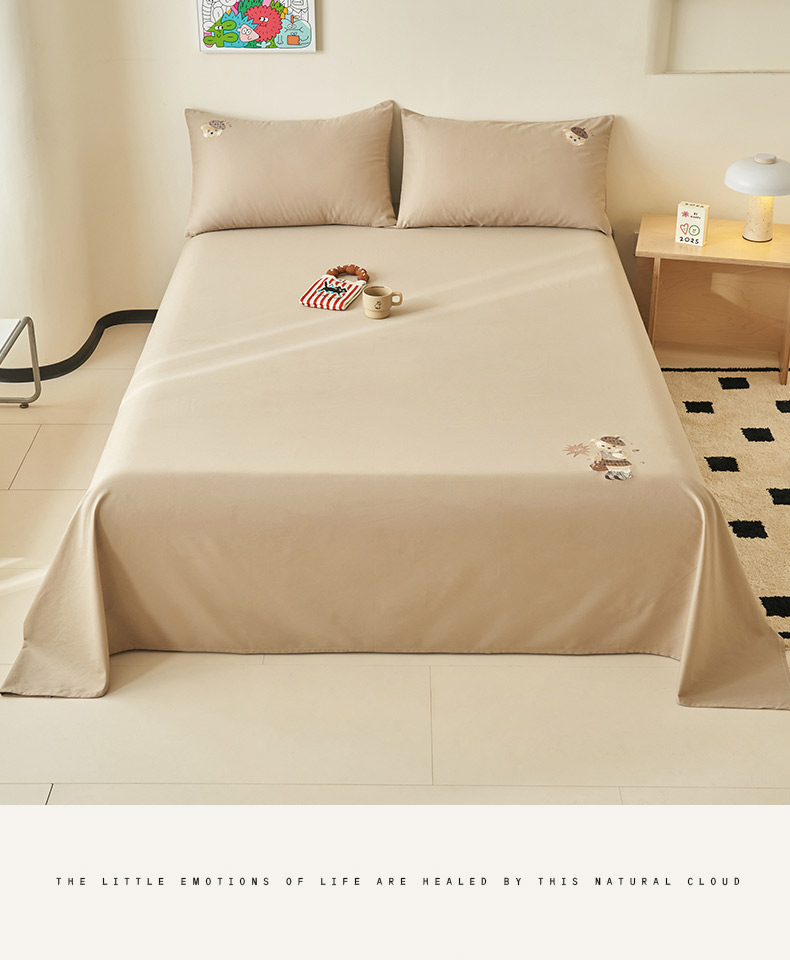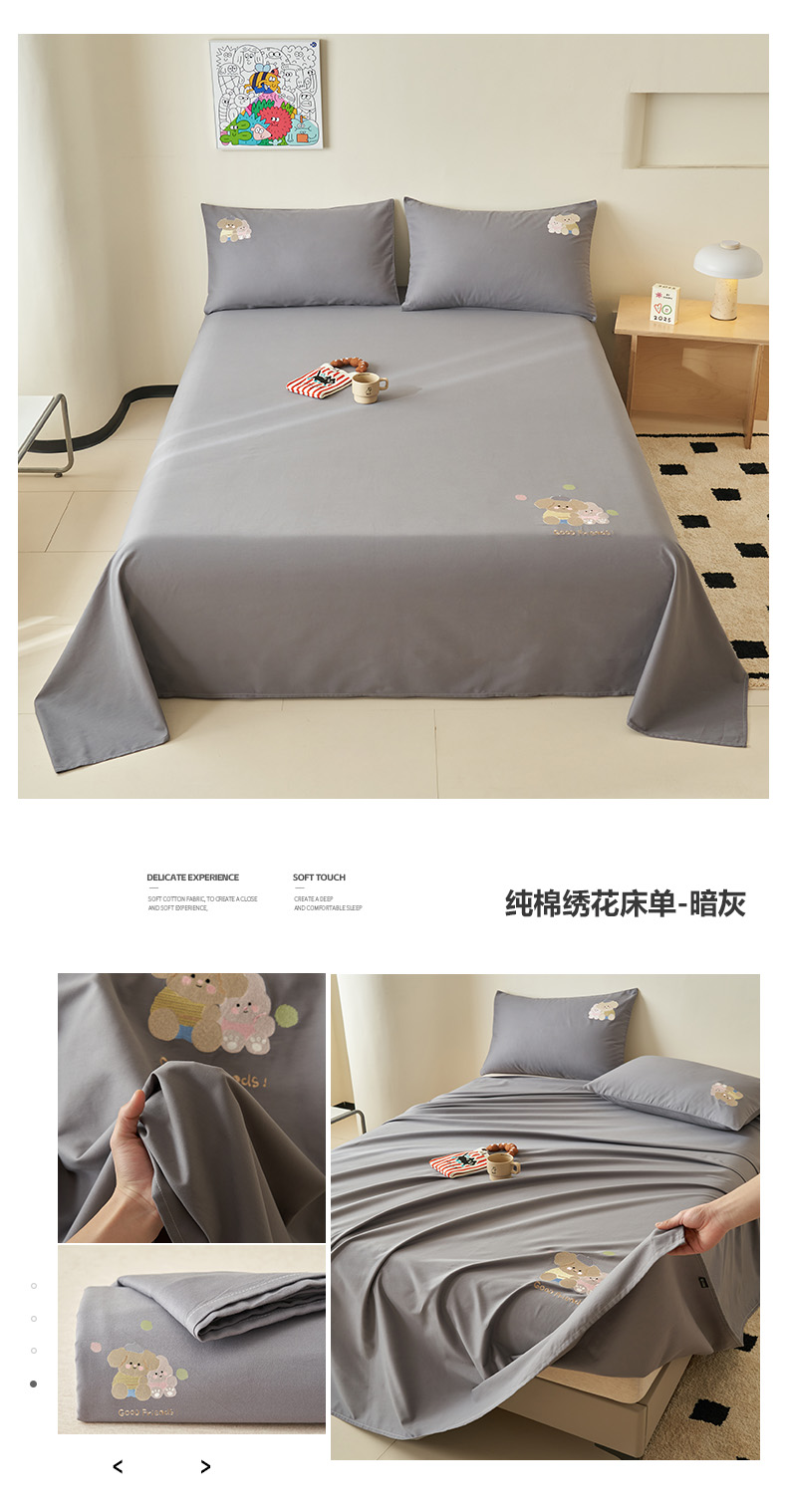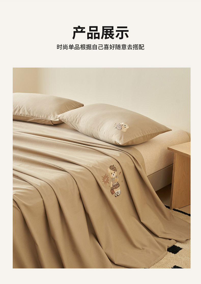 当前位置: 91家纺网 > 商品网购 > 床上用品 > 床单 > 寐绸家纺 2025新款纯棉水洗棉纯色绣花单床单 纯棉绣花床单-米驼