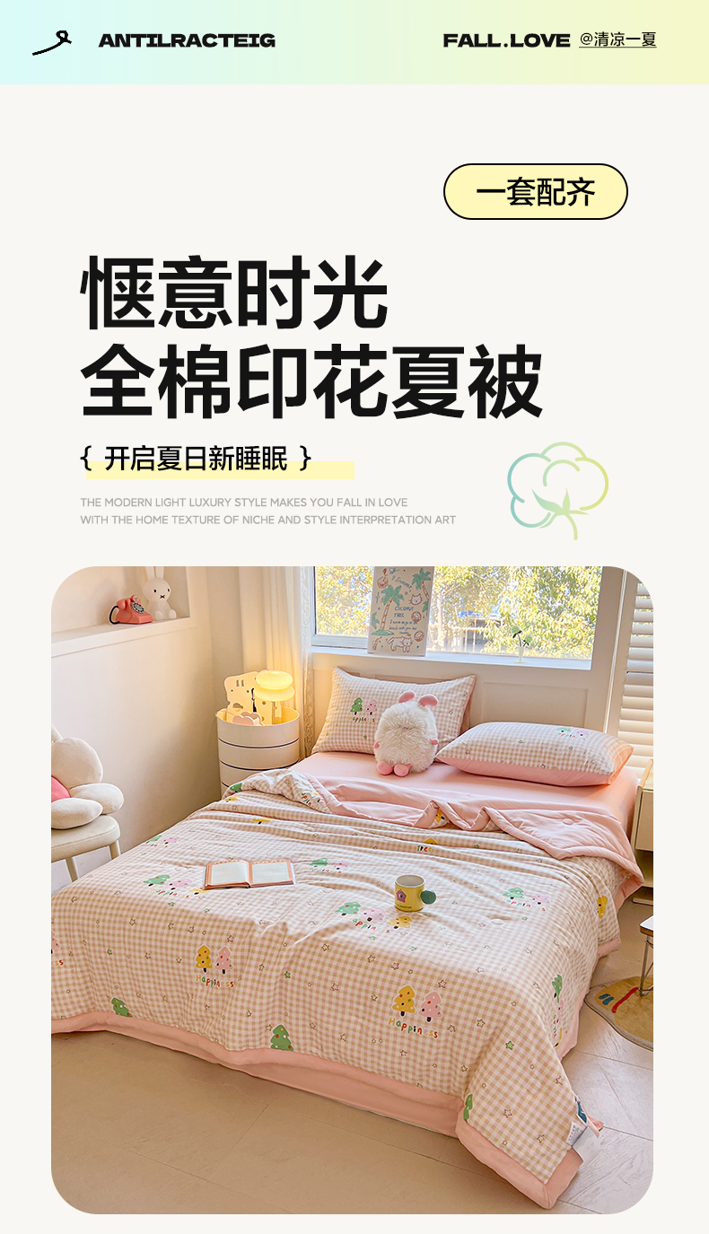 当前位置: 91家纺网 > 商品网购 > 床品套件 > 四件套 > 全棉普通四件套 > 典冠 2025新款全棉印花夏凉被夏被四件套 美好时光