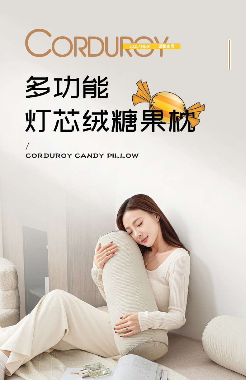 商品名称:美达人 2025新款灯芯绒珍珠棉糖果圆枕 灯芯绒-米白-圆枕