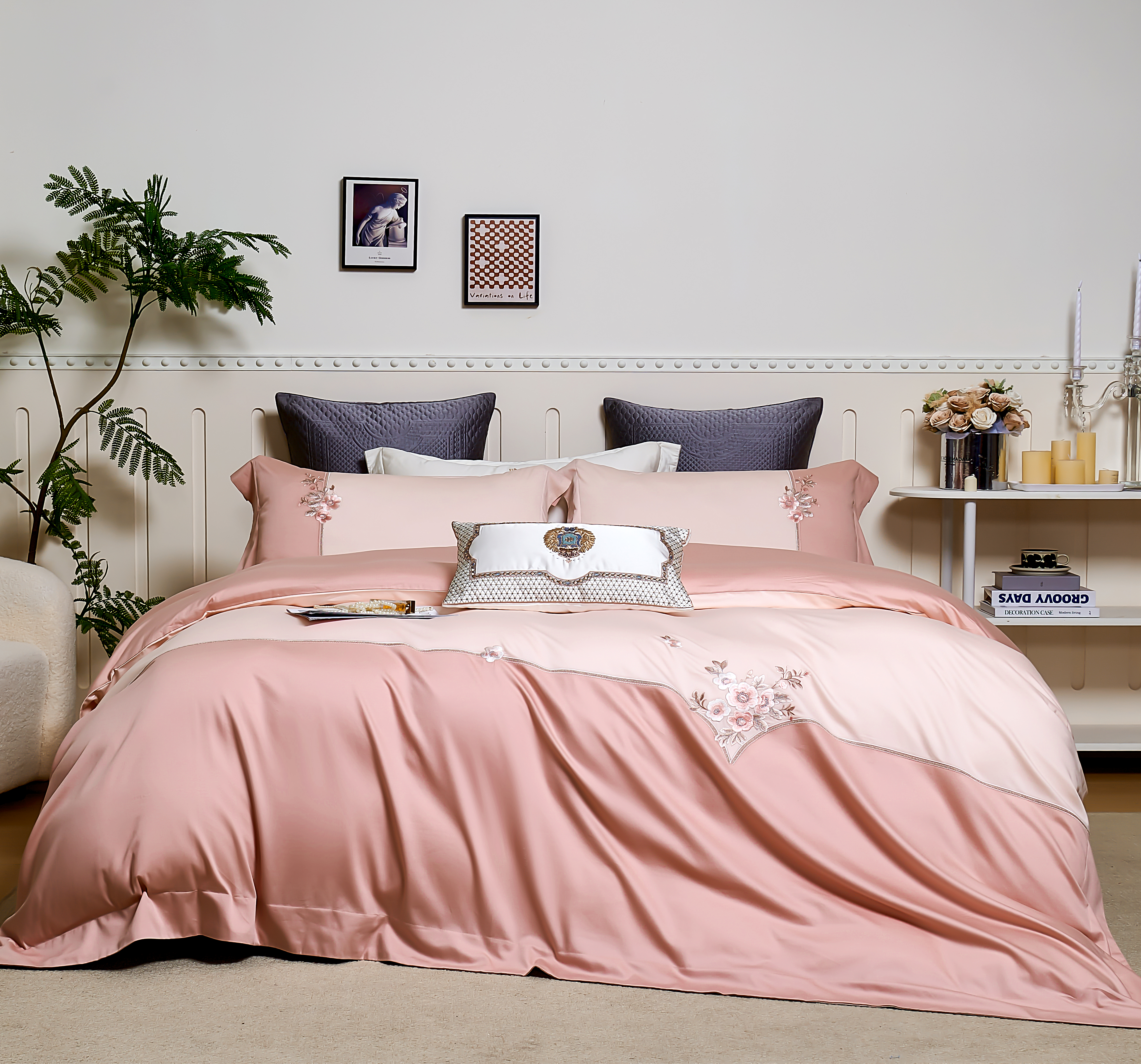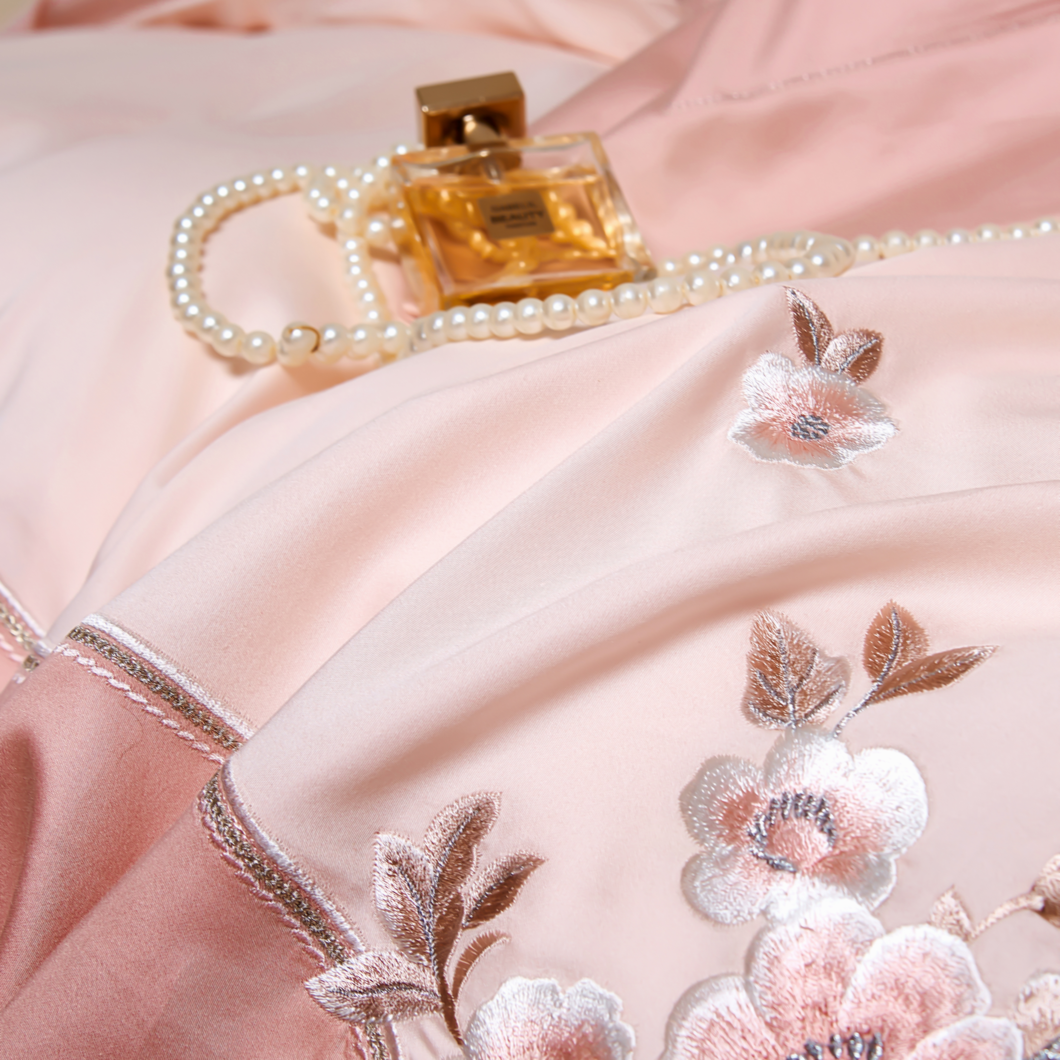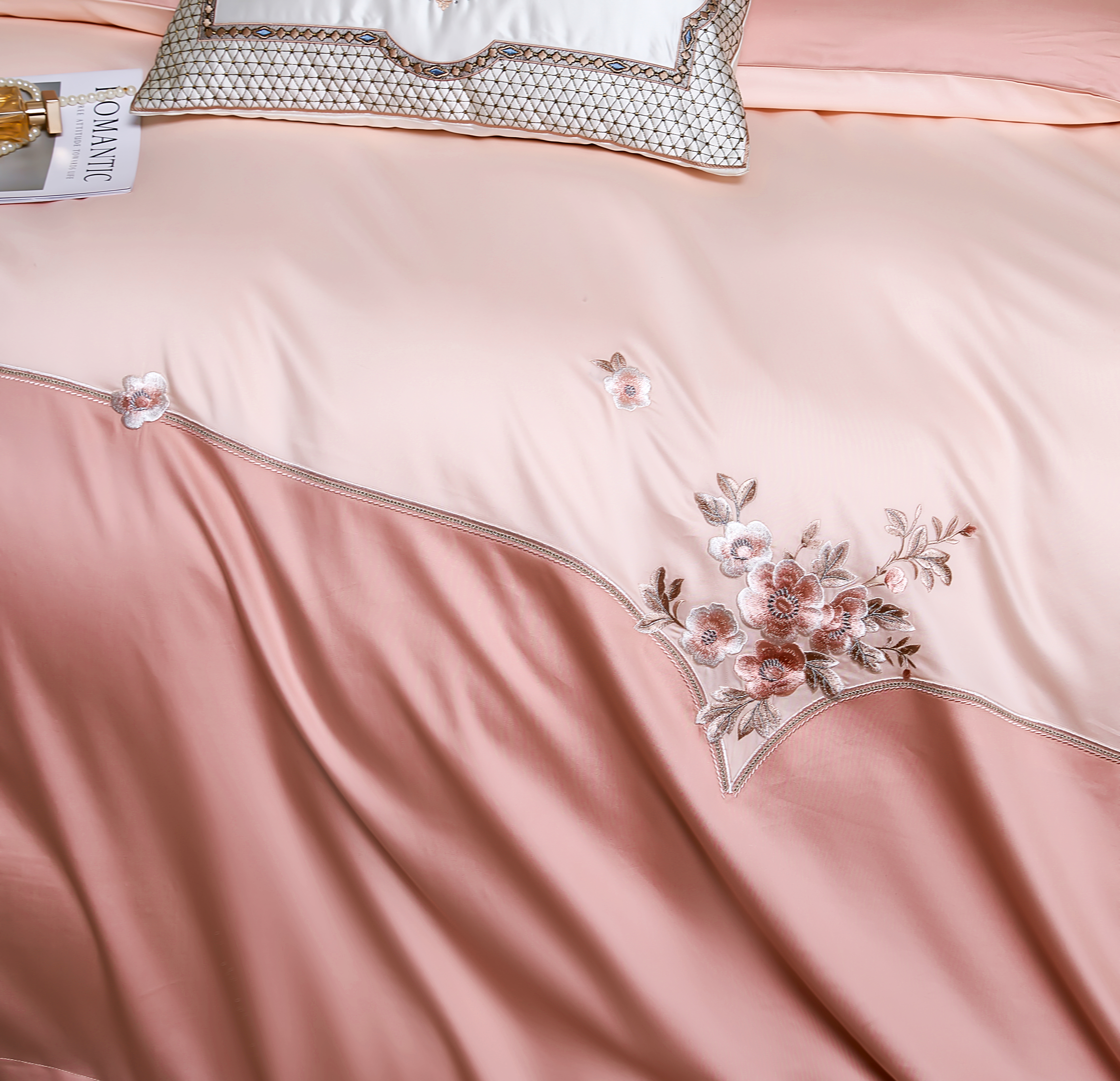 商品名称:U品汇 2025新品120支60s双股贡缎长绒棉重工刺绣花纯棉全棉四件套 海棠湾-豆沙