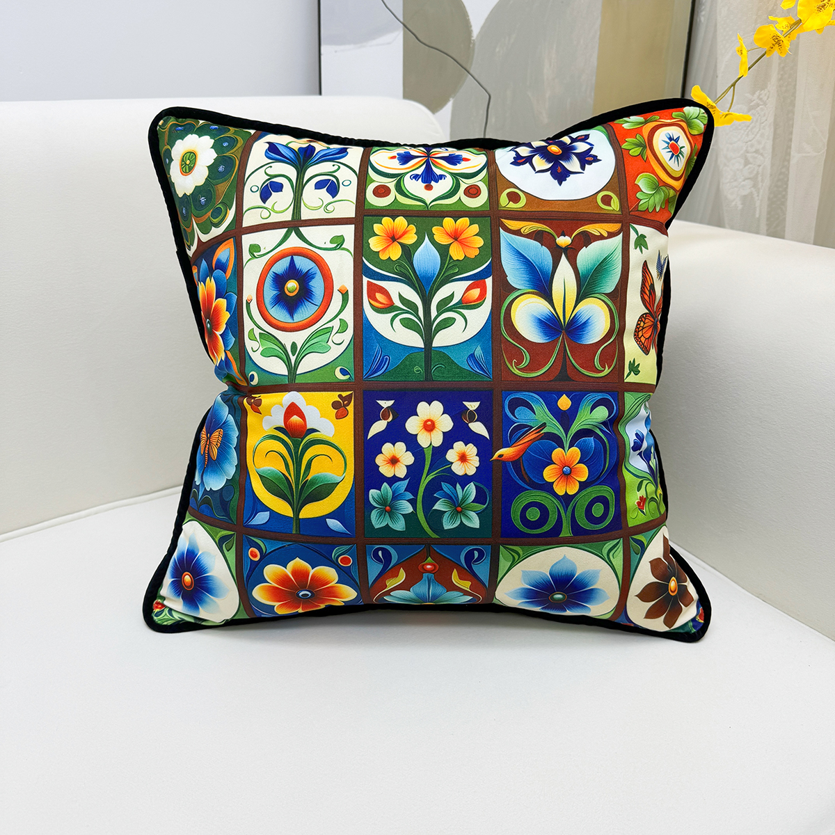爱家居 2025新款抱枕沙发新中式靠垫轻奢高级感靠枕床头大靠背正方形抱枕套卡通花卉 波西米亚