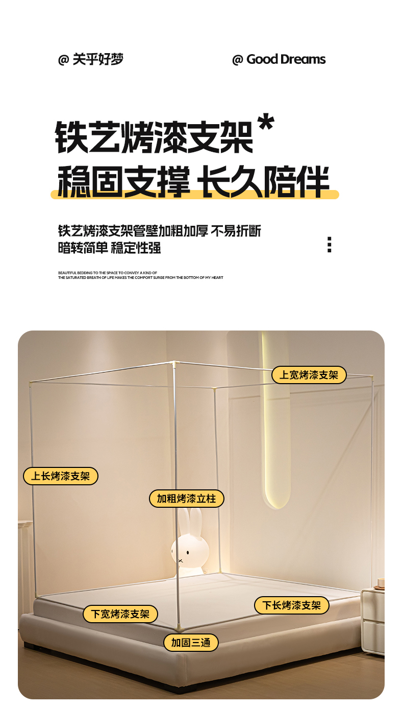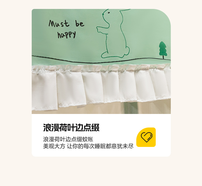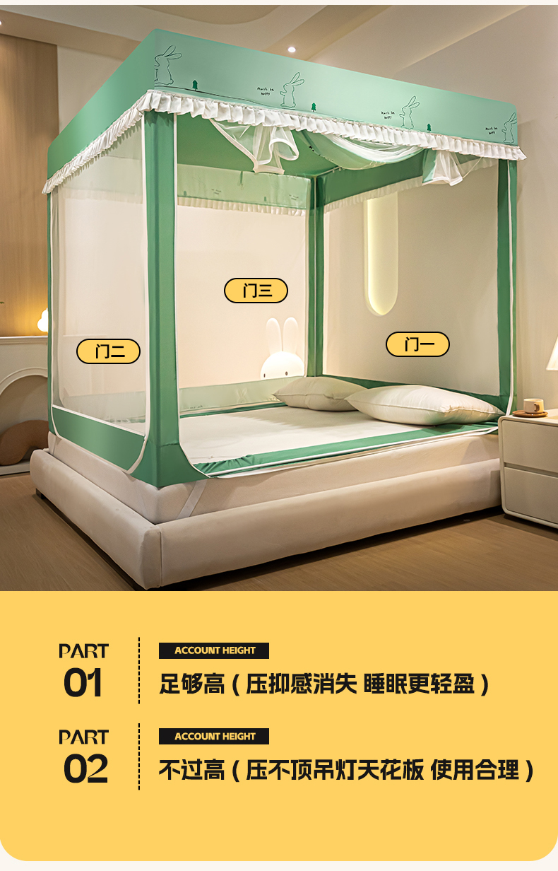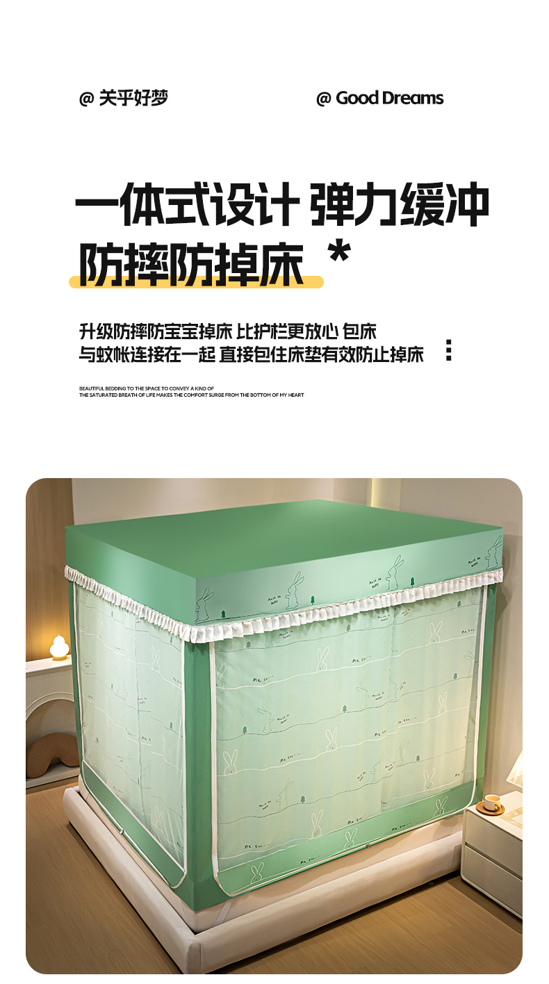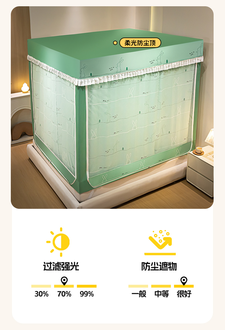 商品名称:锦逸家居 2025新款坐床式防摔遮光蚊帐 开心小兔-遮光