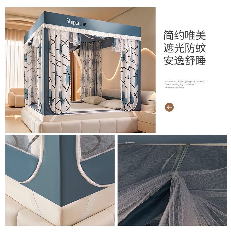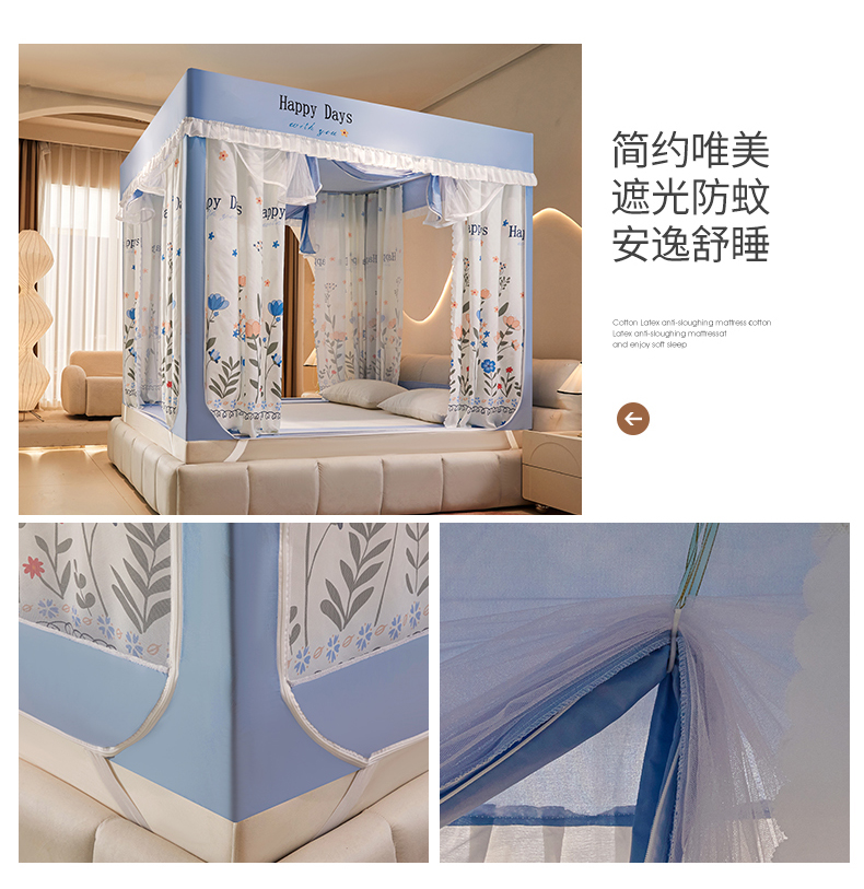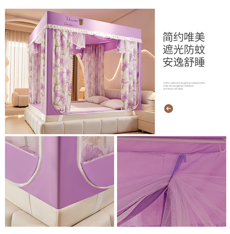 (总)锦逸家居 2025新款遮光防摔床帘式坐床蚊帐-仲夏之夜,米黄色,粉色,浅紫色,天蓝色,雾霾蓝,荧光黄,玉色