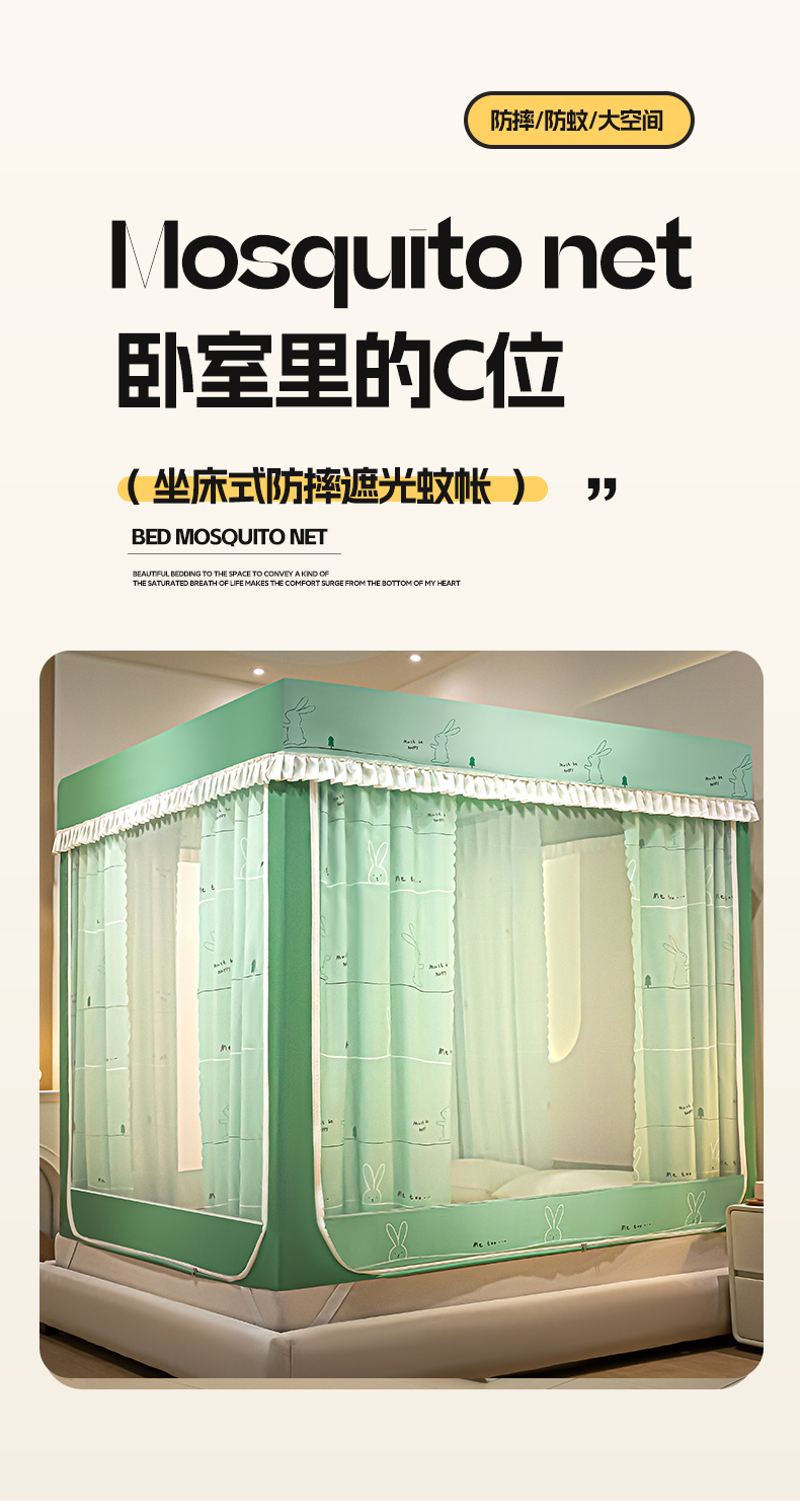 锦逸家居 2025新款坐床式防摔遮光蚊帐 开心小兔-遮光
