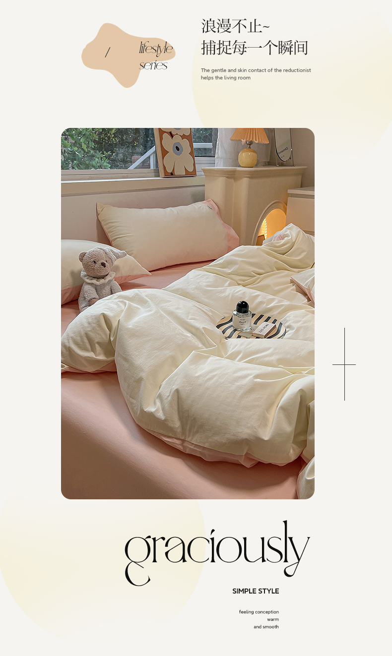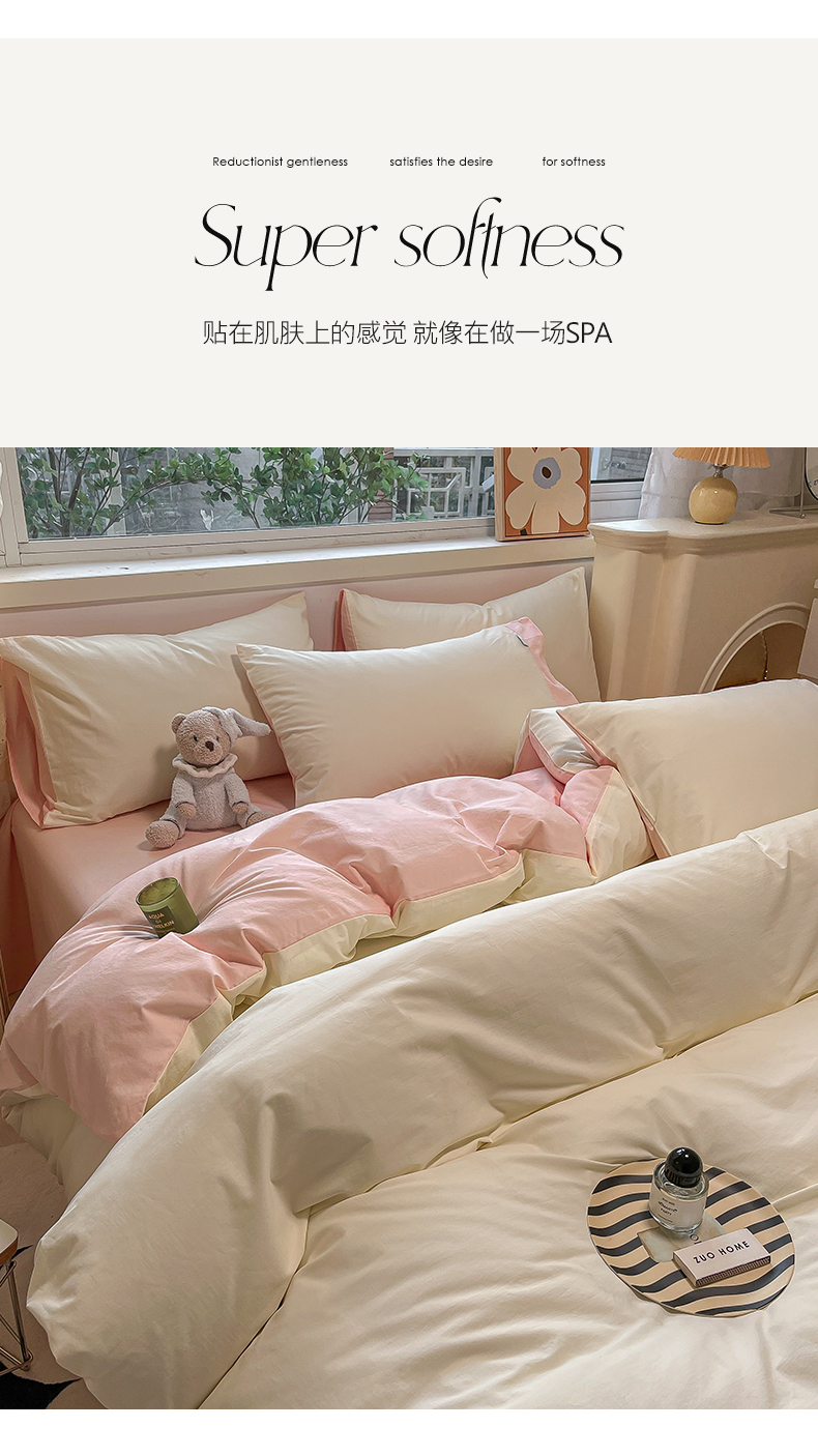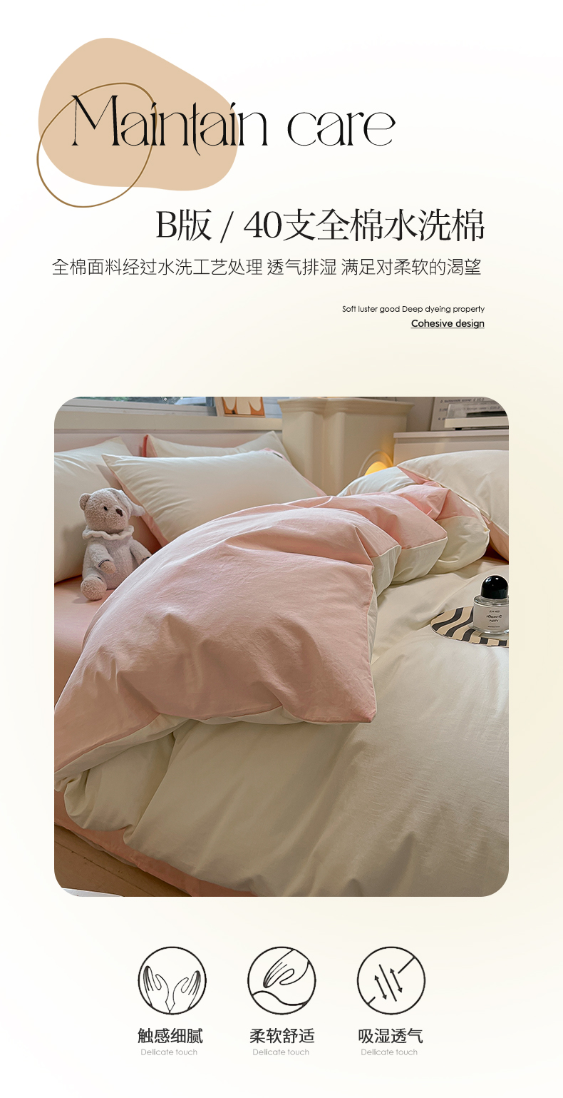 卡巴伦家纺 2025新款A版色织32支B版40支纯棉A类水洗棉四件套单被套 奶昔-粉