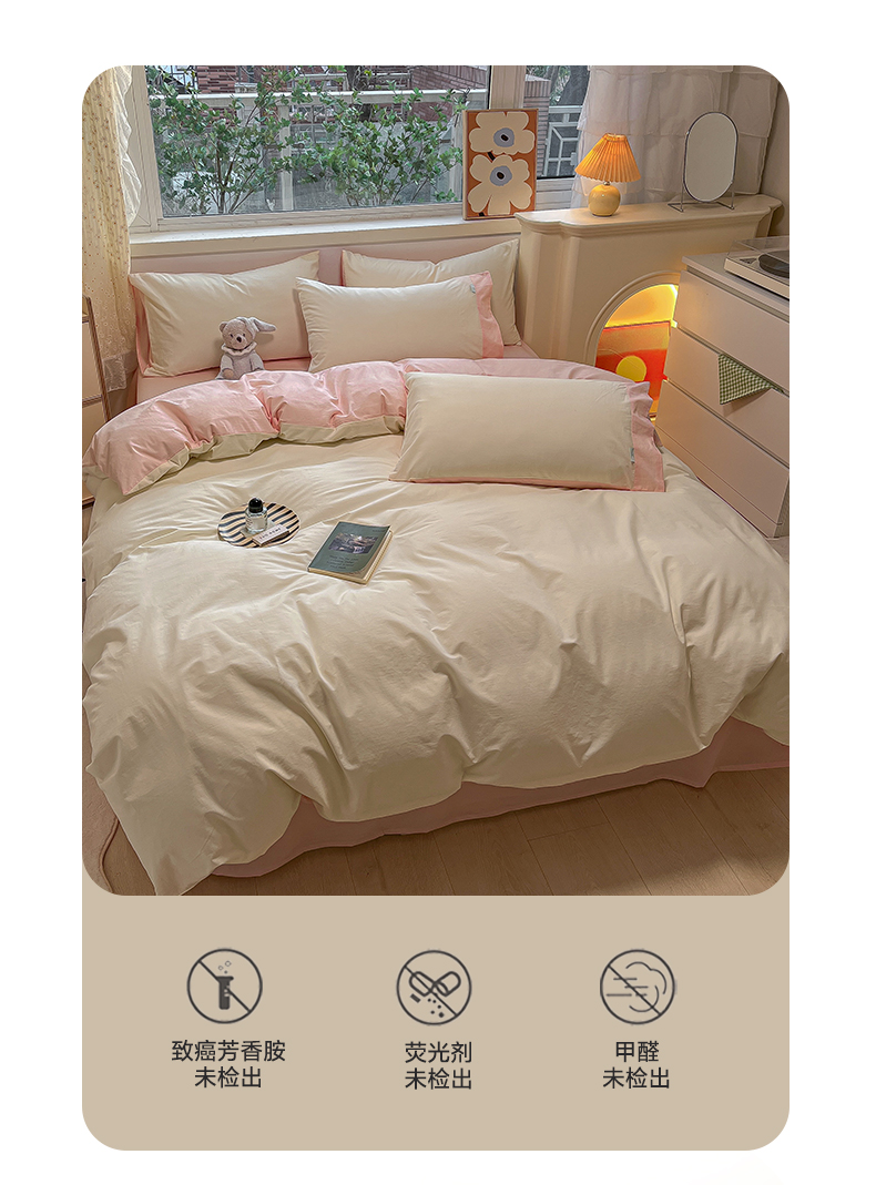 商品名称:卡巴伦家纺 2025新款A版色织32支B版40支纯棉A类水洗棉四件套单被套 奶昔-粉