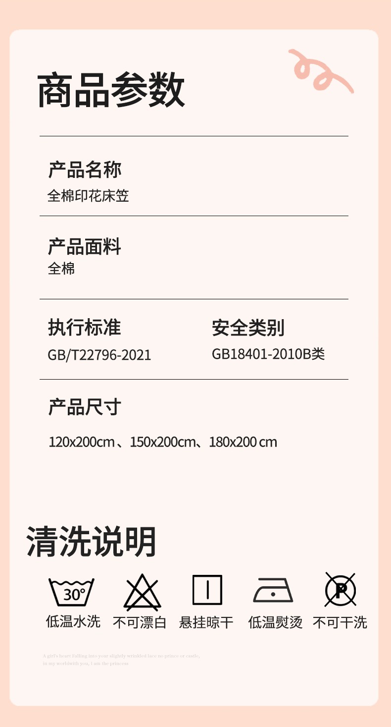 商品名称:2025新款12868全棉套件单品系列二单床笠 轻婉花语