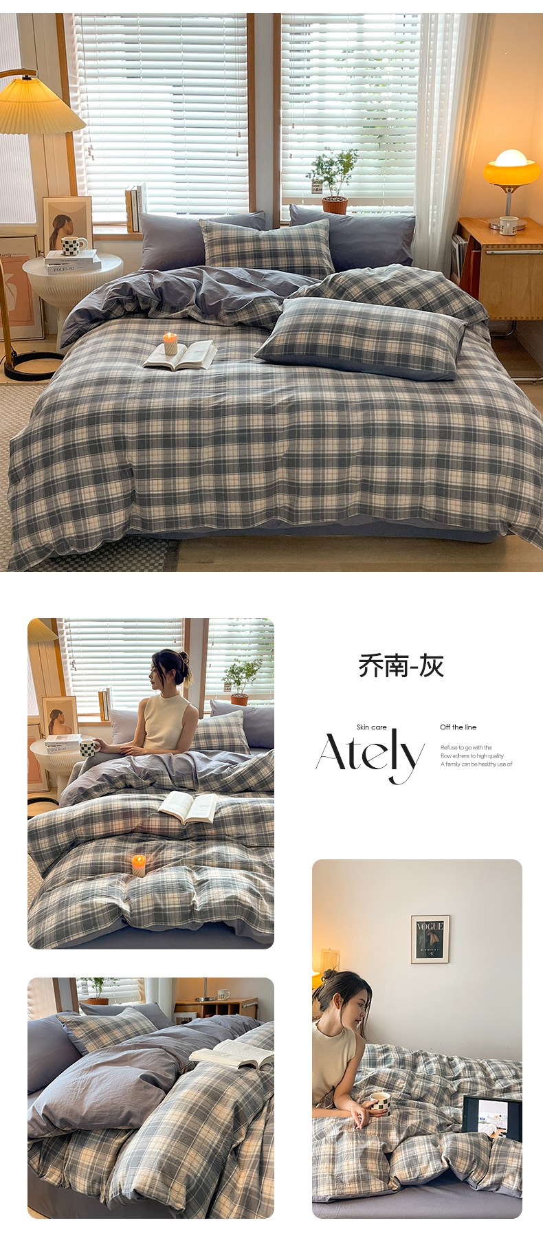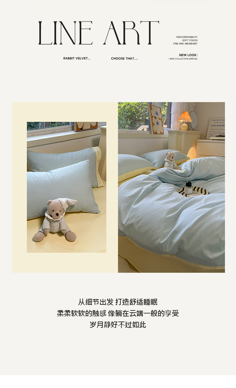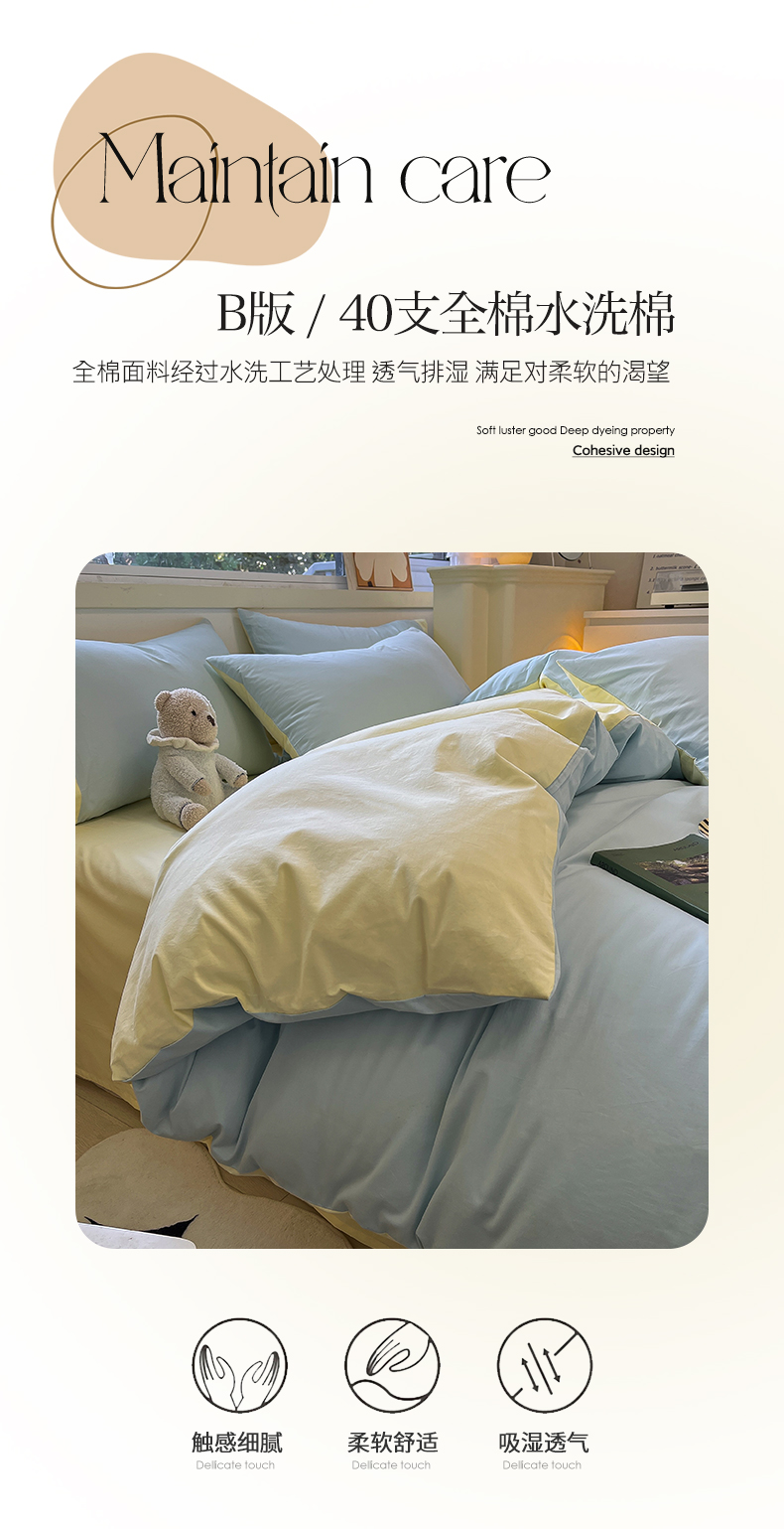 卡巴伦家纺 2025新款40支纯棉A类水洗棉四件套风格2 晨雾象牙