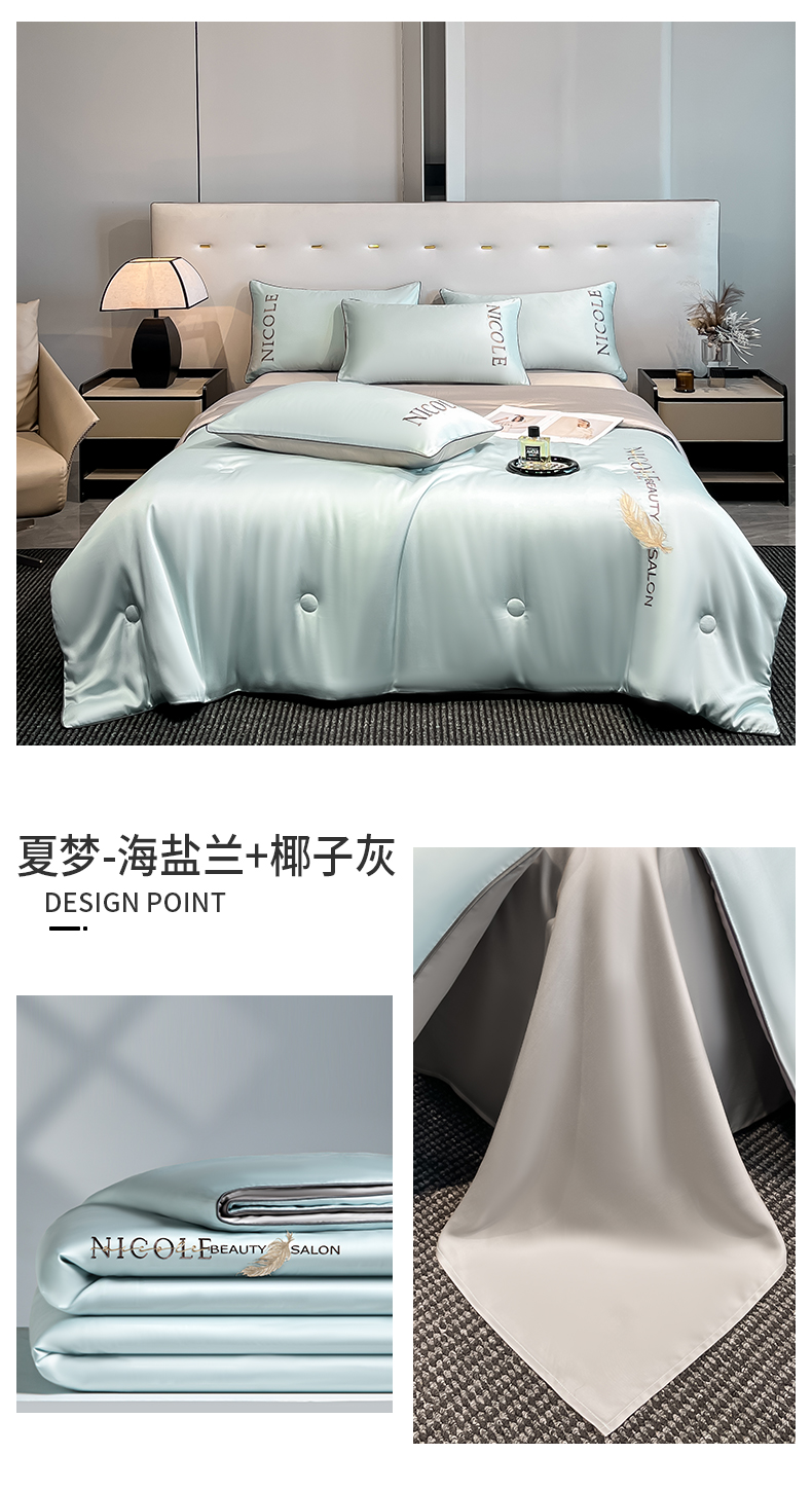(总)云棉坊 2025新款滚边水洗真丝刺绣夏被四件套-轻羽系列,轻羽-宾利蓝,轻羽-高级灰,轻羽-山灰,轻羽-天空蓝,轻羽-卡其,轻羽-本白