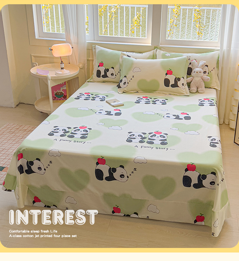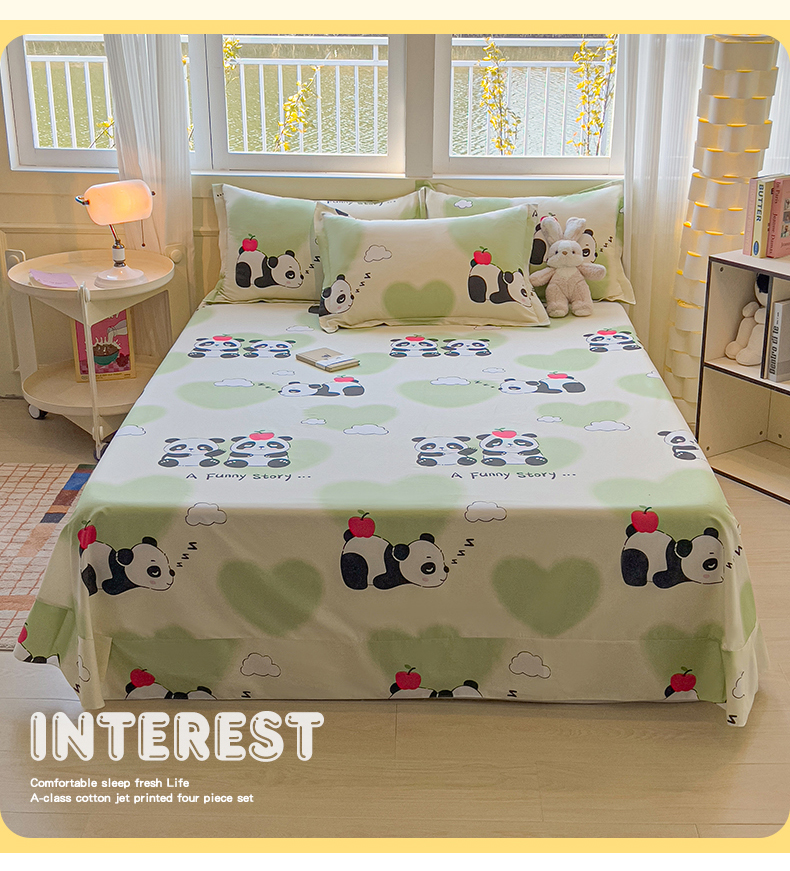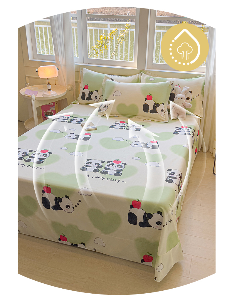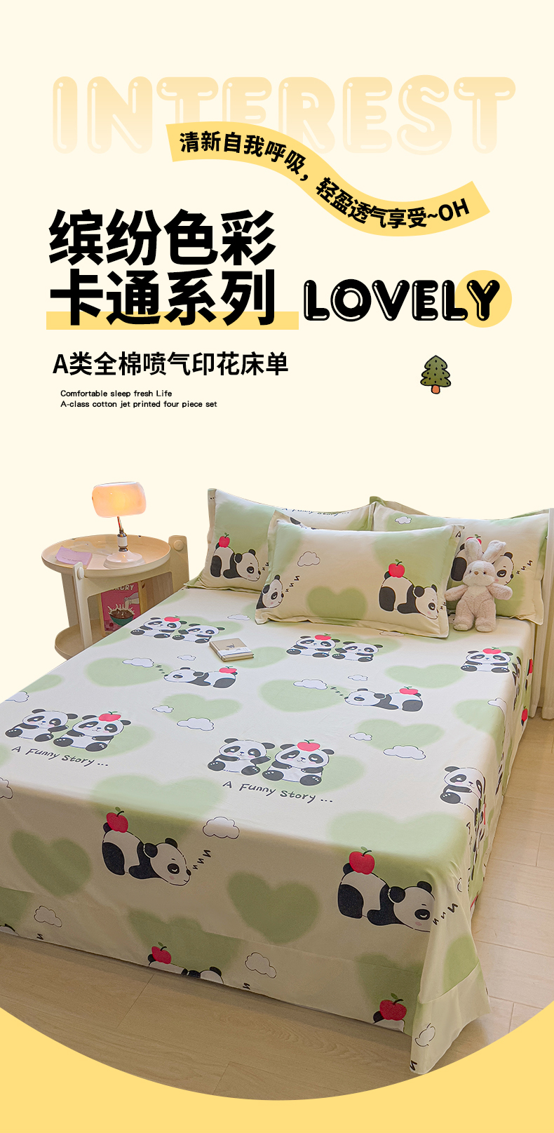 拾物记 2025新款A类无荧光全喷气全棉12868单床单 熊猫趣事