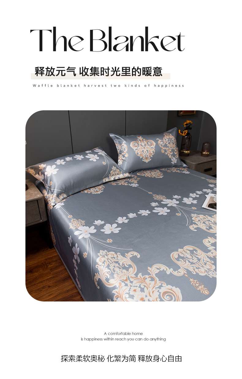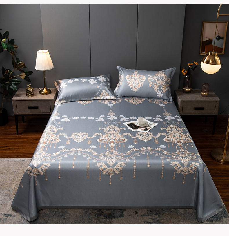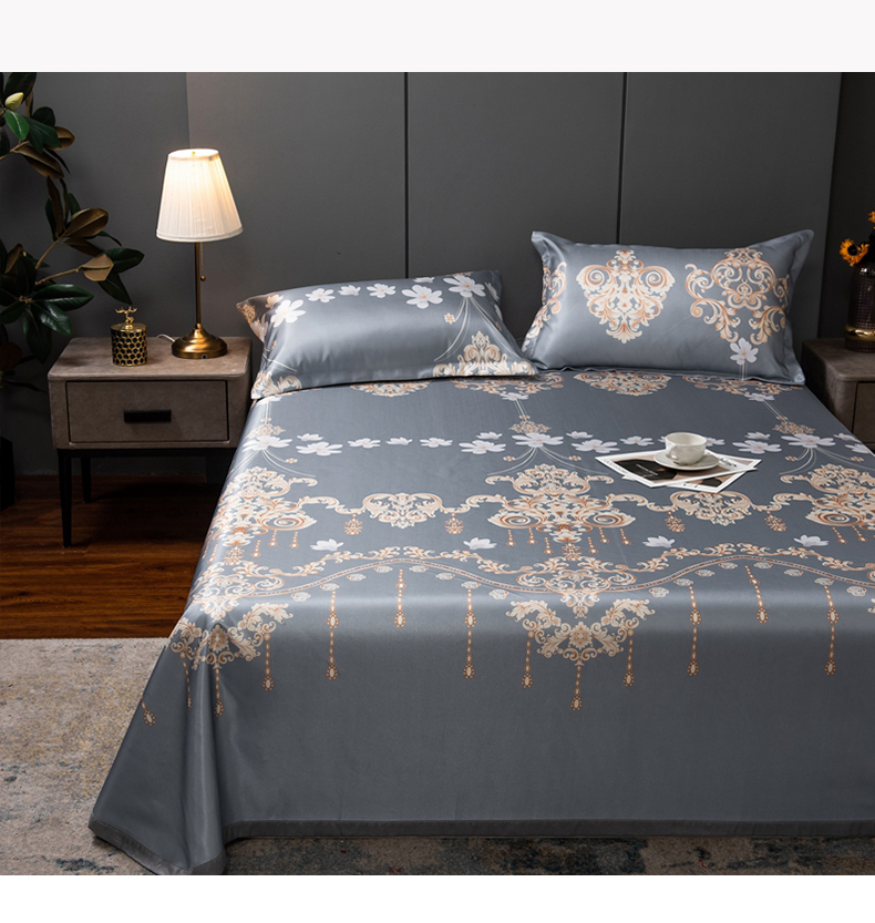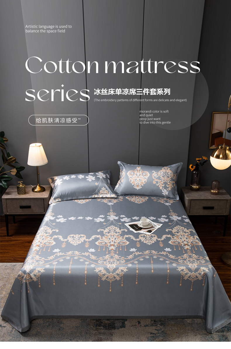 商品名称:柏薇 2025新款冰丝床单款凉席三件套系列 落英缤纷-灰