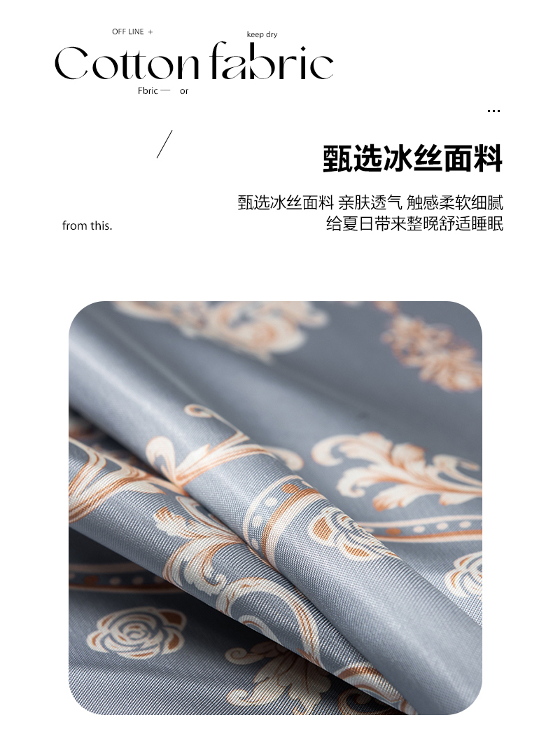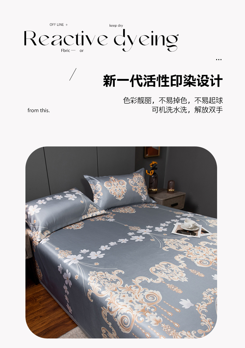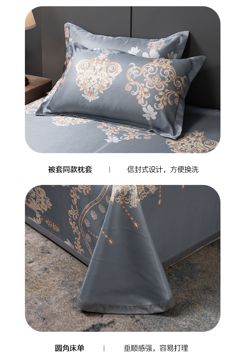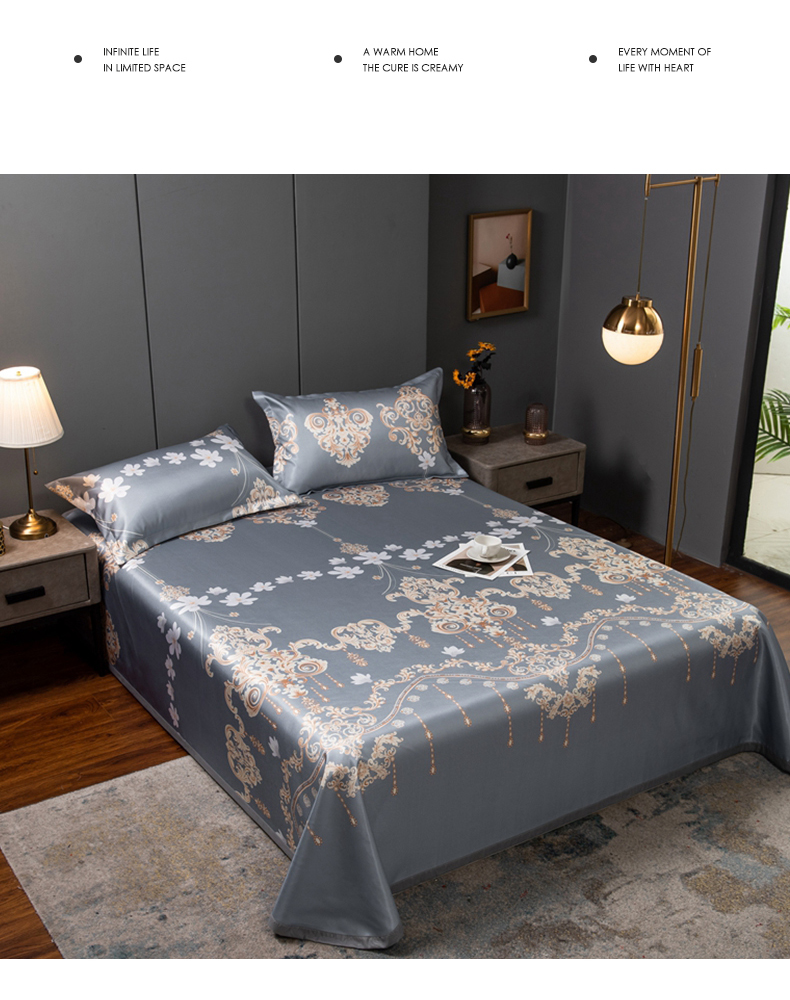 商品名称:柏薇 2025新款冰丝床单款凉席三件套系列 落英缤纷-灰