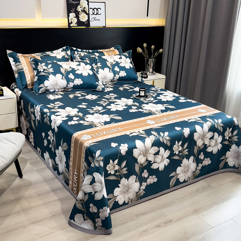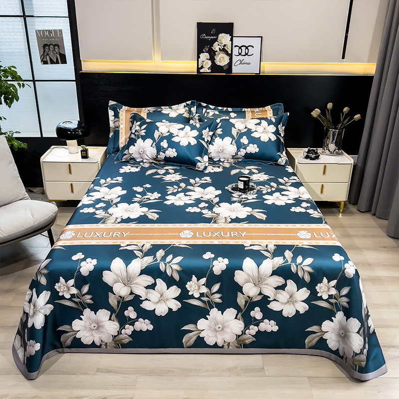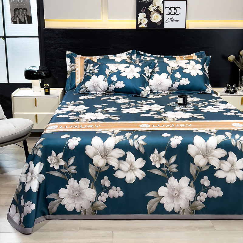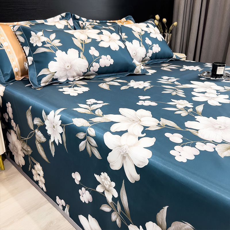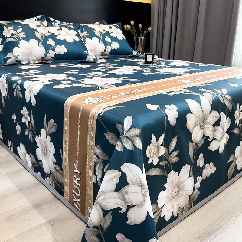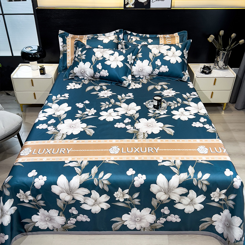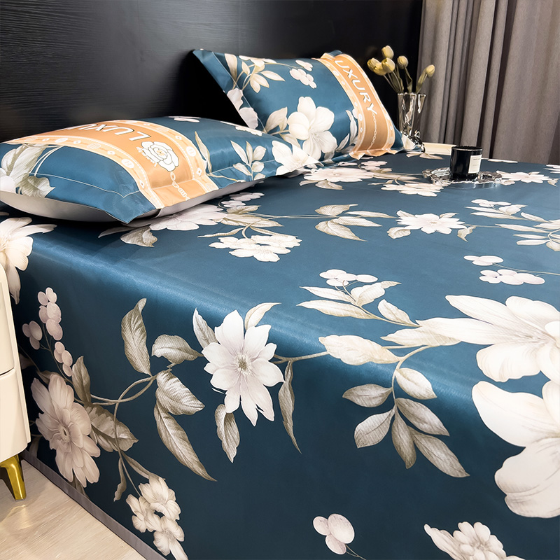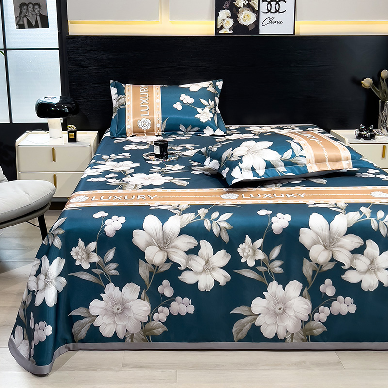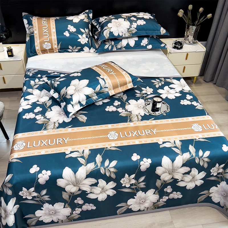 商品名称:柏薇 2025新款冰丝床单款凉席三件套系列 郁金香