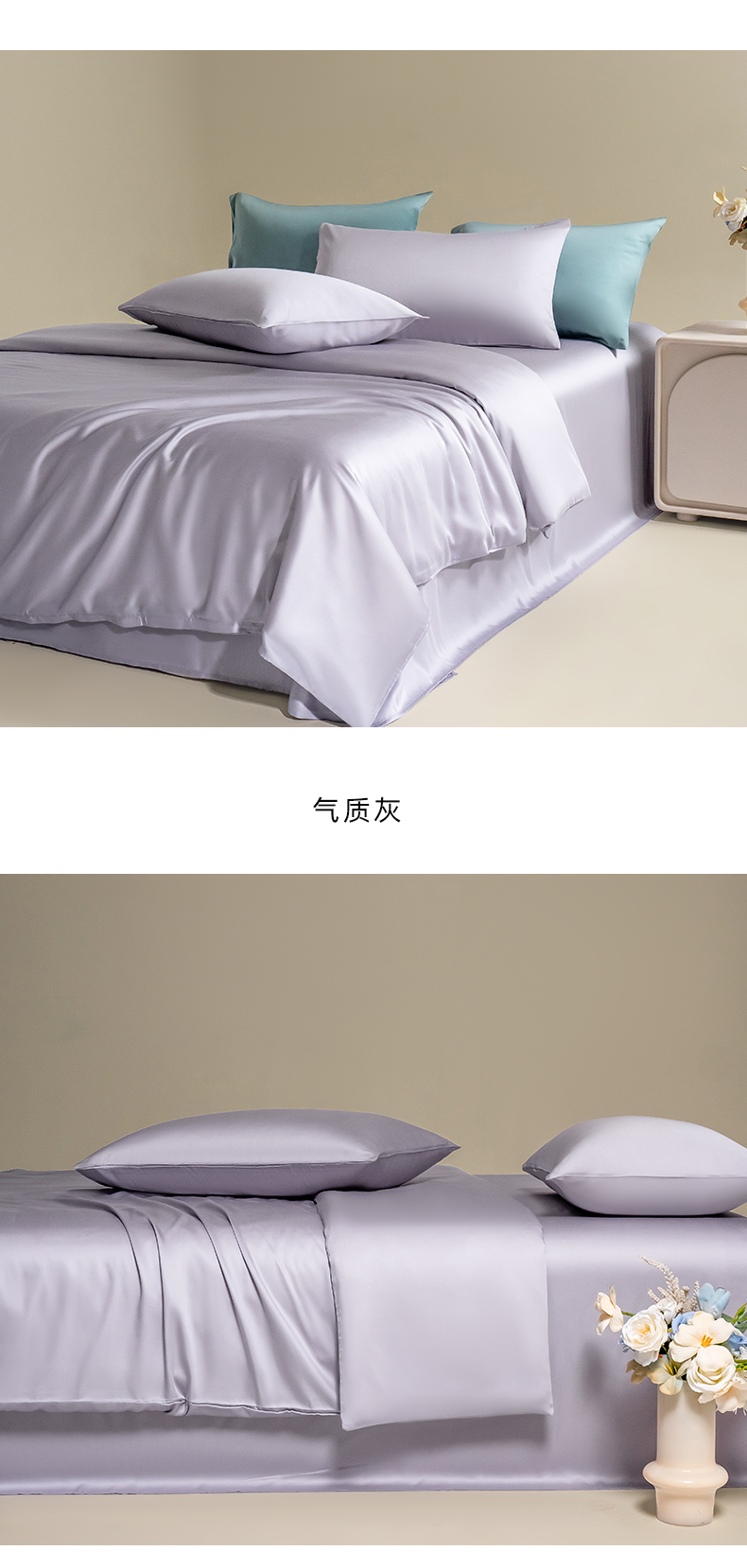 商品名称:Mr.pig猪先生水洗棉 2025新款莱赛尔天丝四件套-风格二 伊连青-气质灰