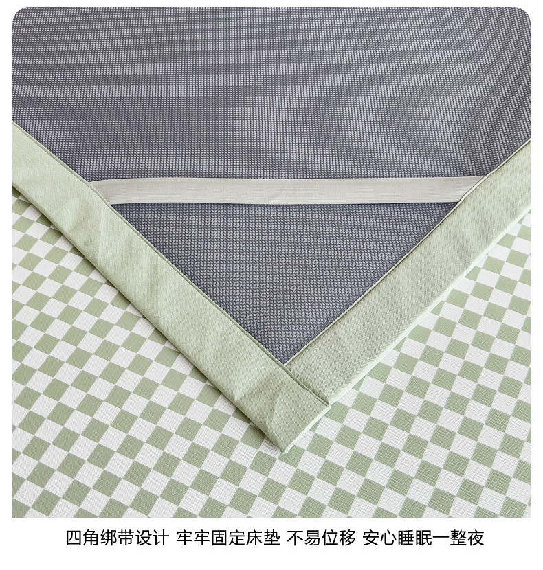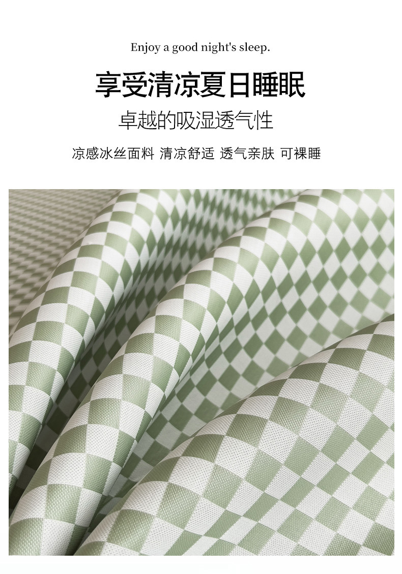 商品名称:慕尚家纺 2025春夏新款凉感冰丝提花凉席三件套 提花席 棋盘格绿