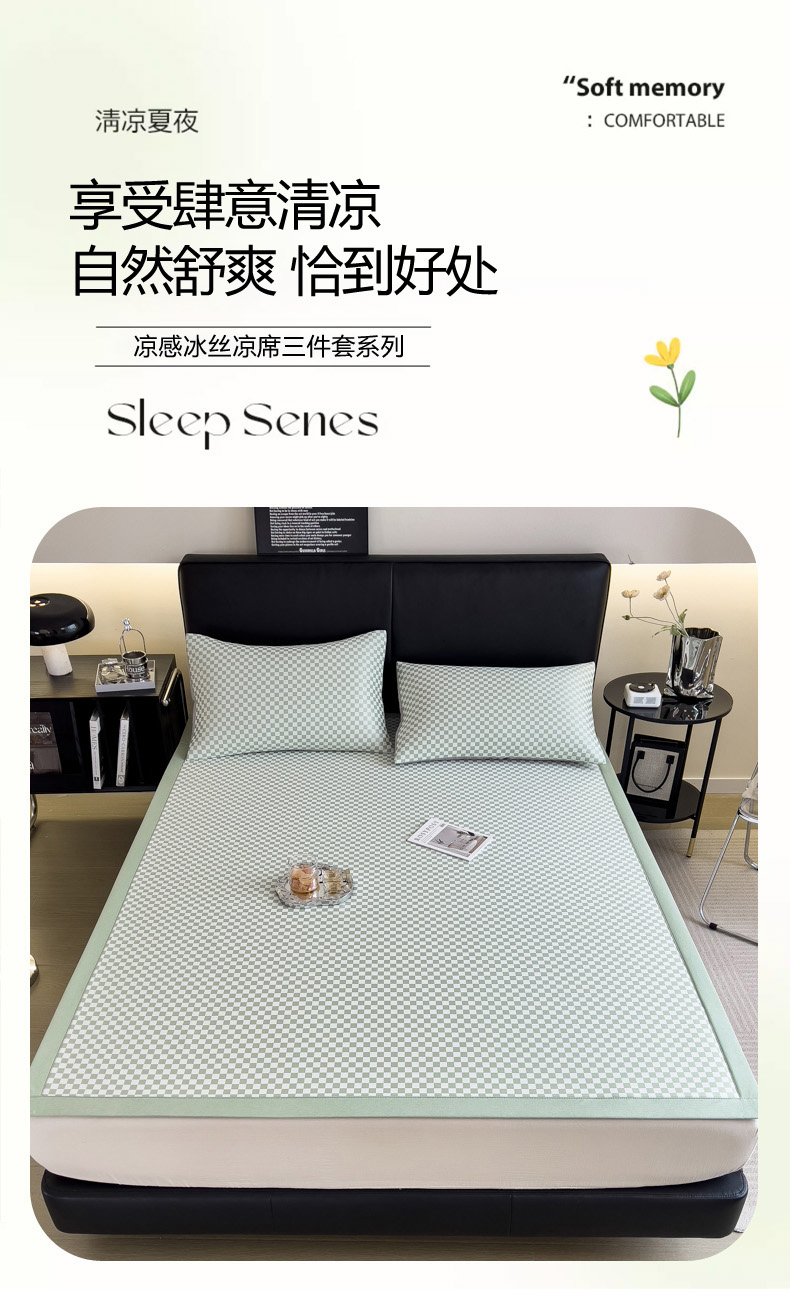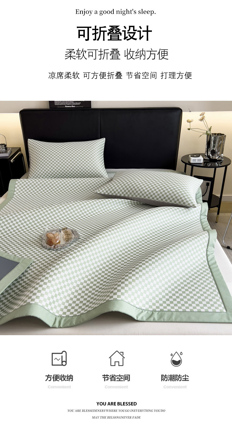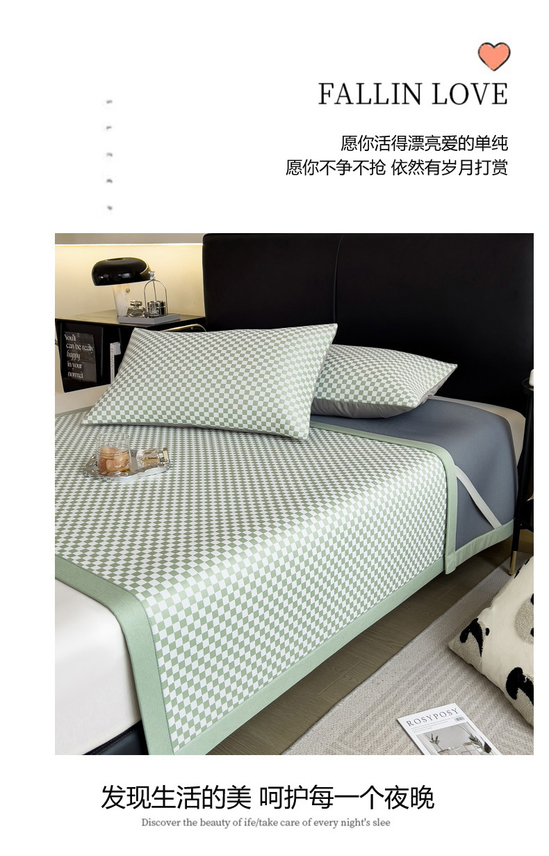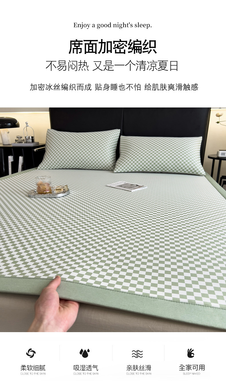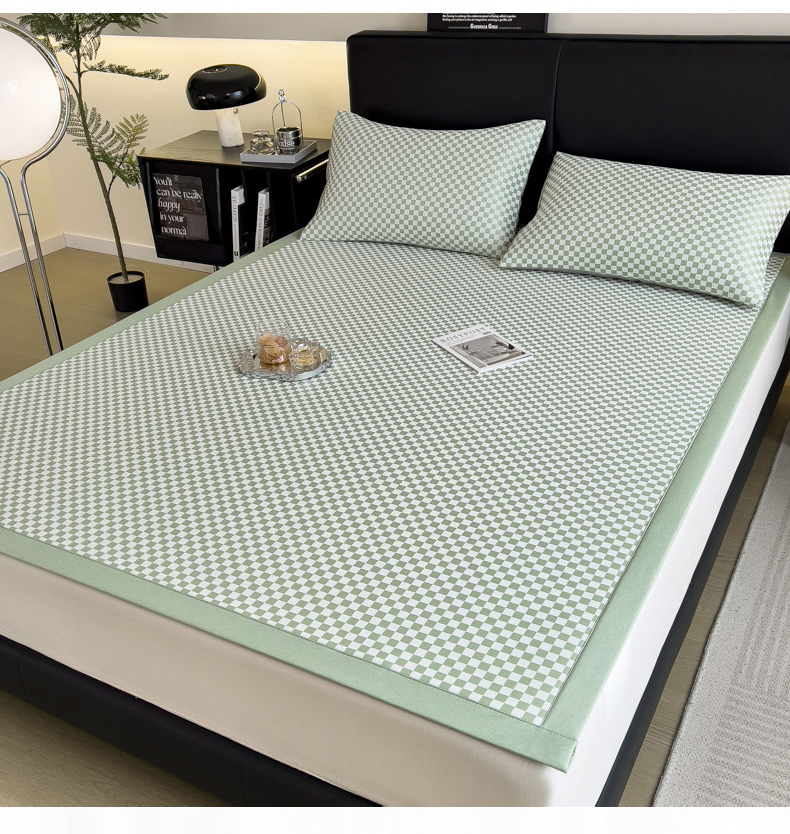 慕尚家纺 2025春夏新款凉感冰丝提花凉席三件套 提花席 棋盘格绿