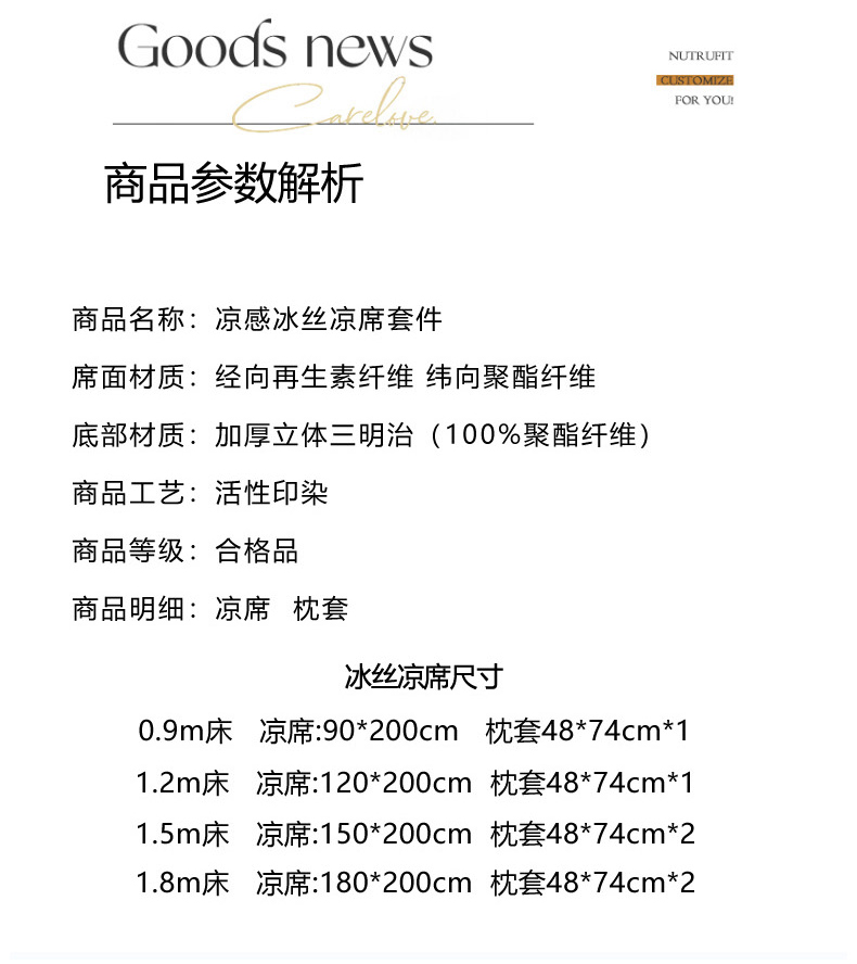 1.8m凉席三件套