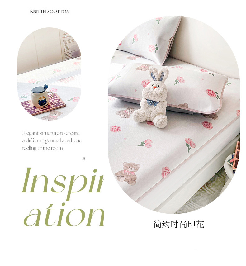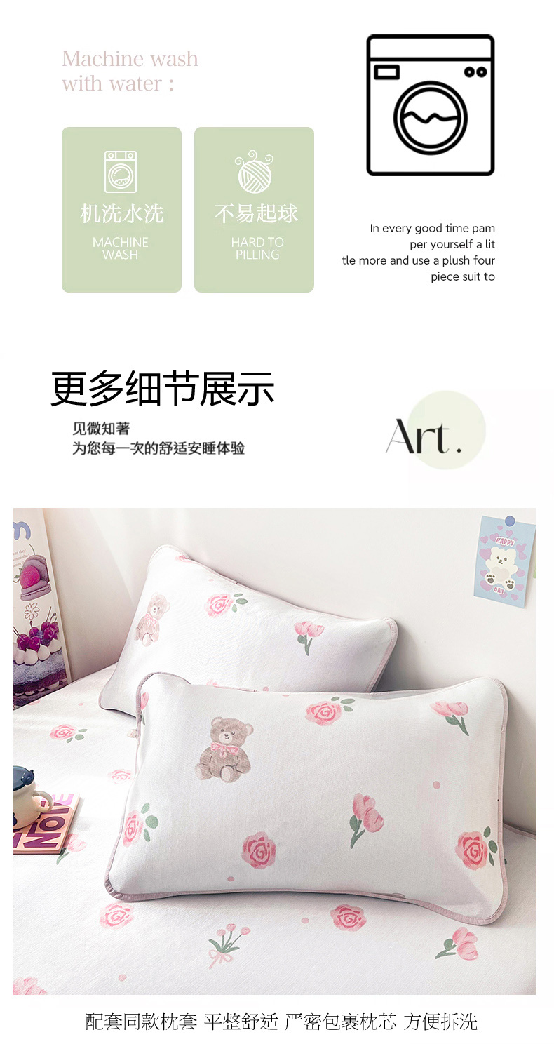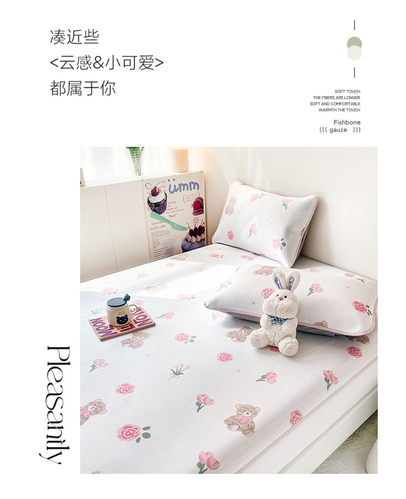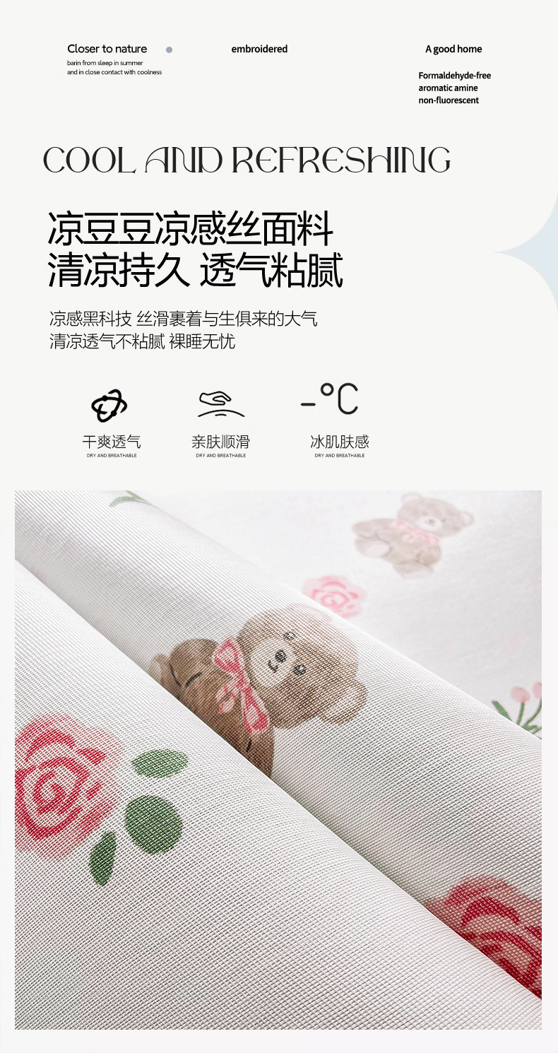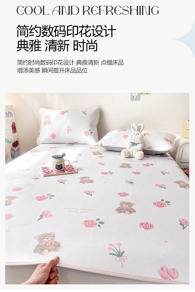 商品名称:倾慕家纺 2025新款时尚风凉感冰丝席 玫瑰小熊