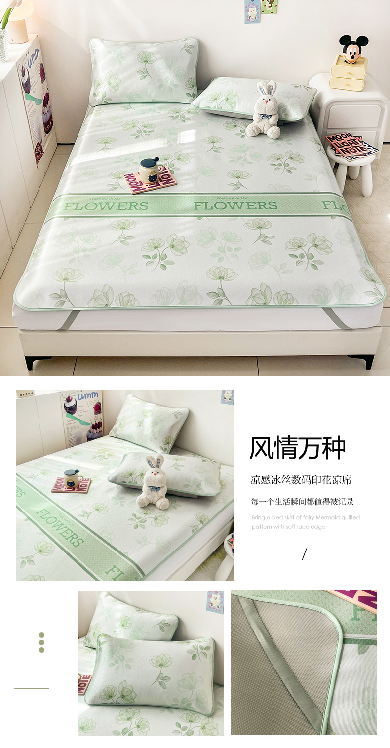 倾慕家纺 2025新款时尚风凉感冰丝席 玫瑰小熊